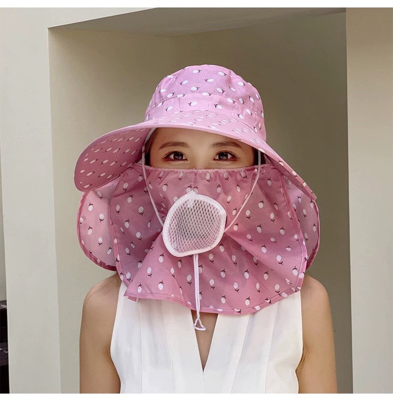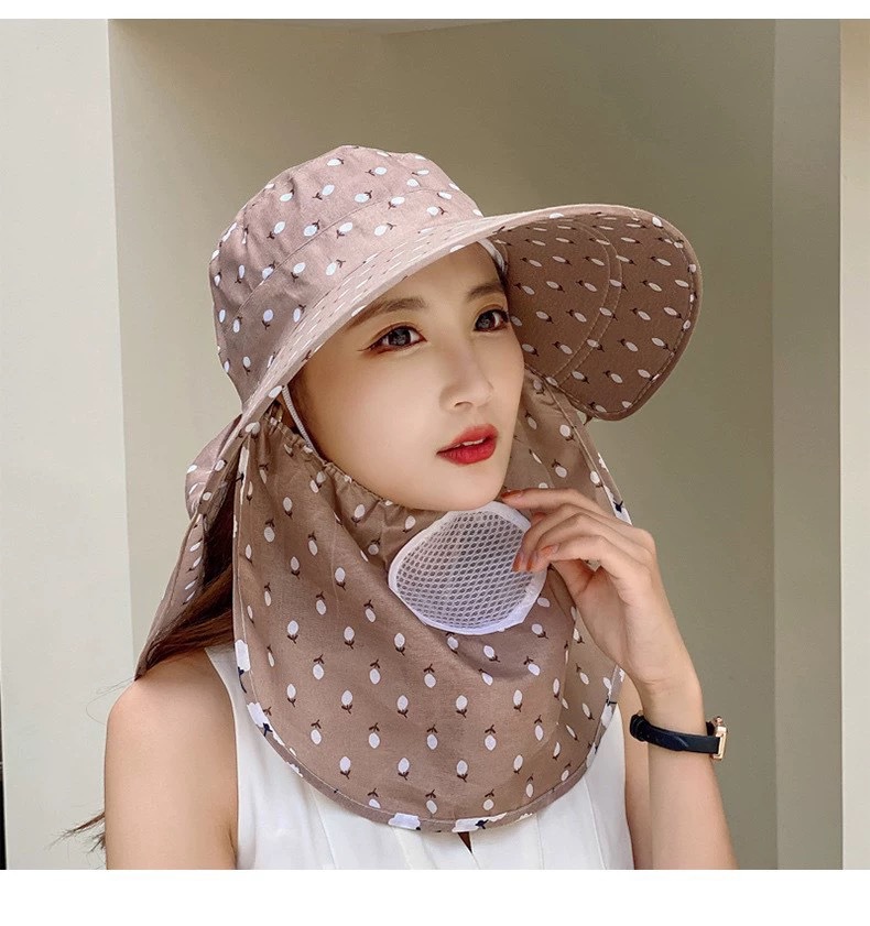 遮阳帽夏季采茶防晒帽女遮脸面罩防紫外线太阳帽子男骑车干活女款