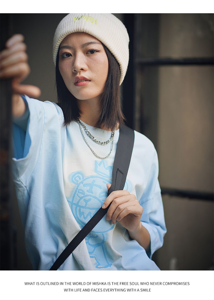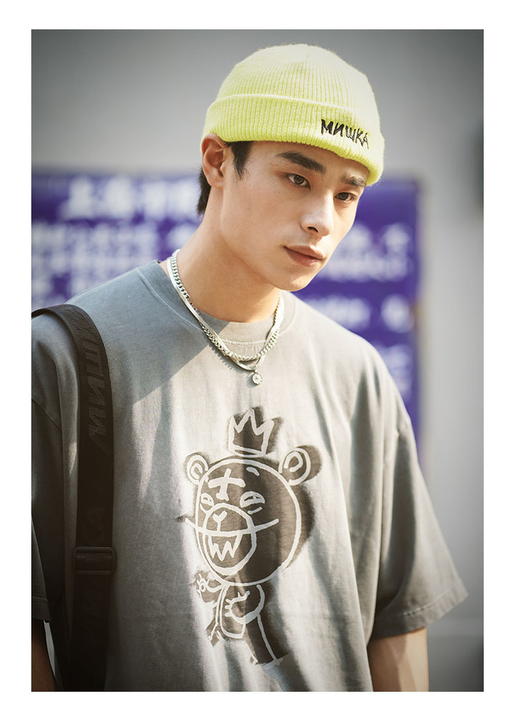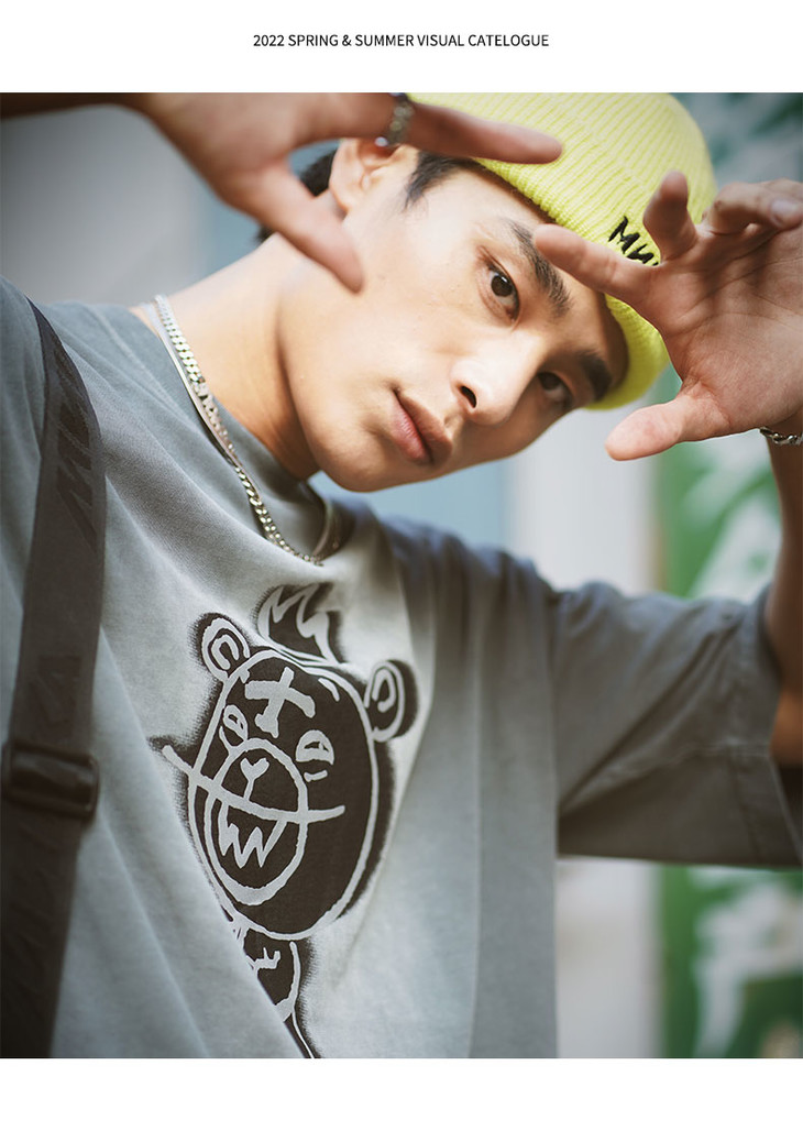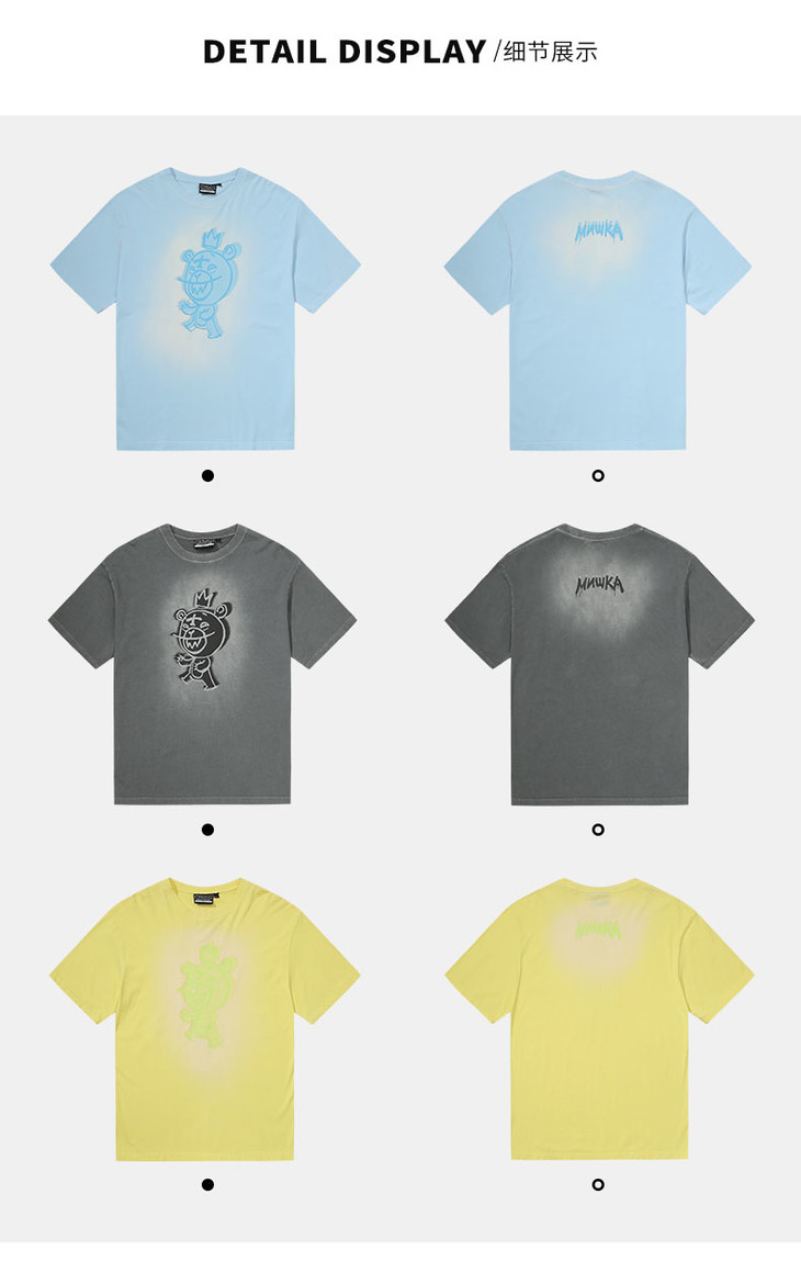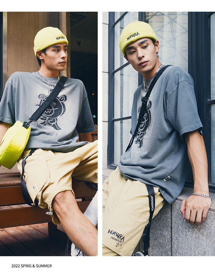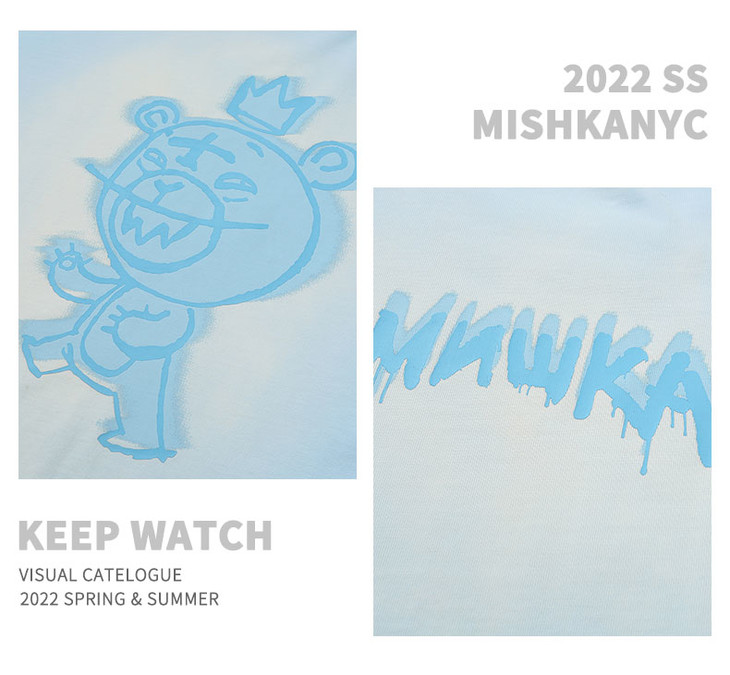 Mishka大眼球潮牌2022春夏新品 KA爷涂鸦熊圆领短袖T恤男女同款