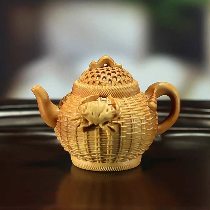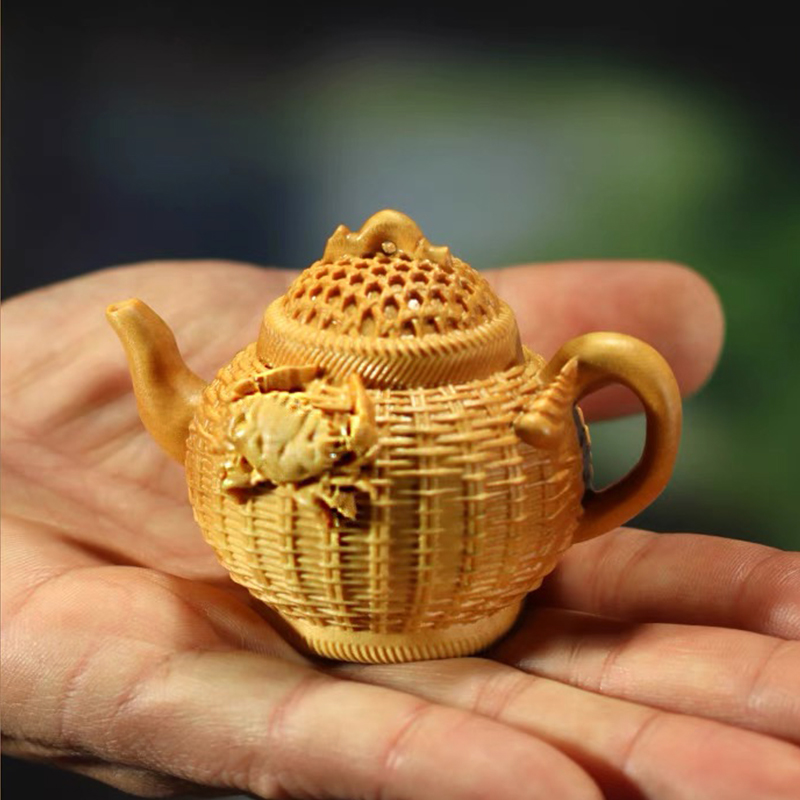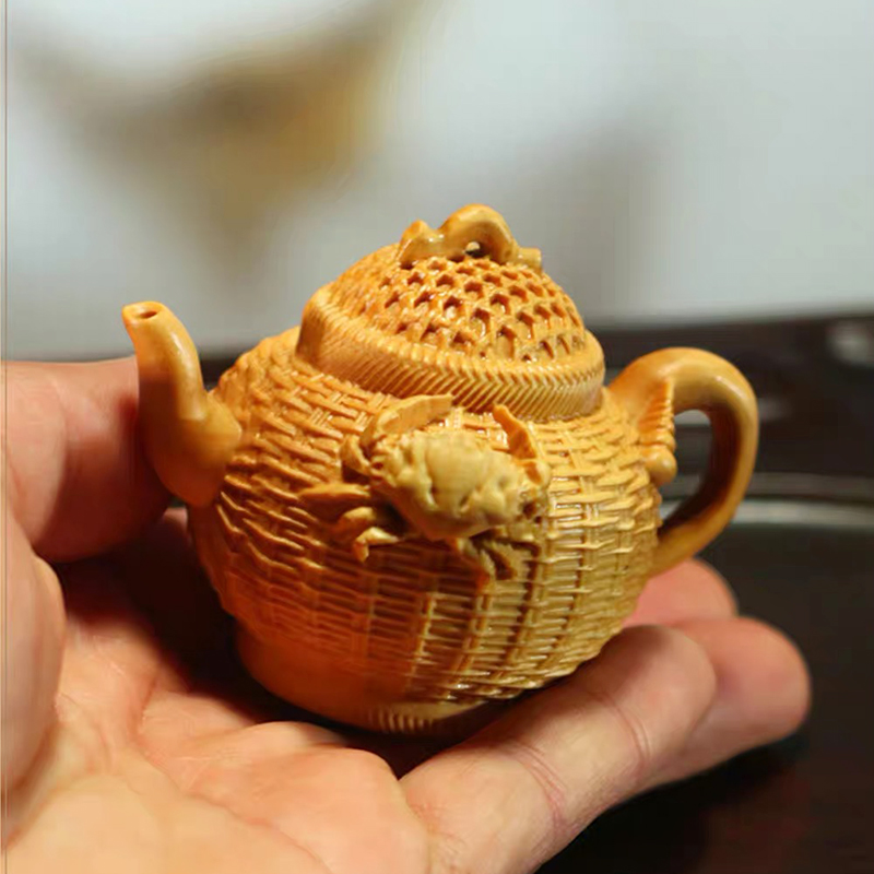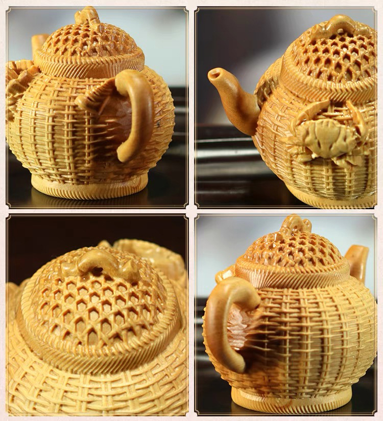 名称:八方来财(螃蟹鱼篓)°黄杨木把把壶