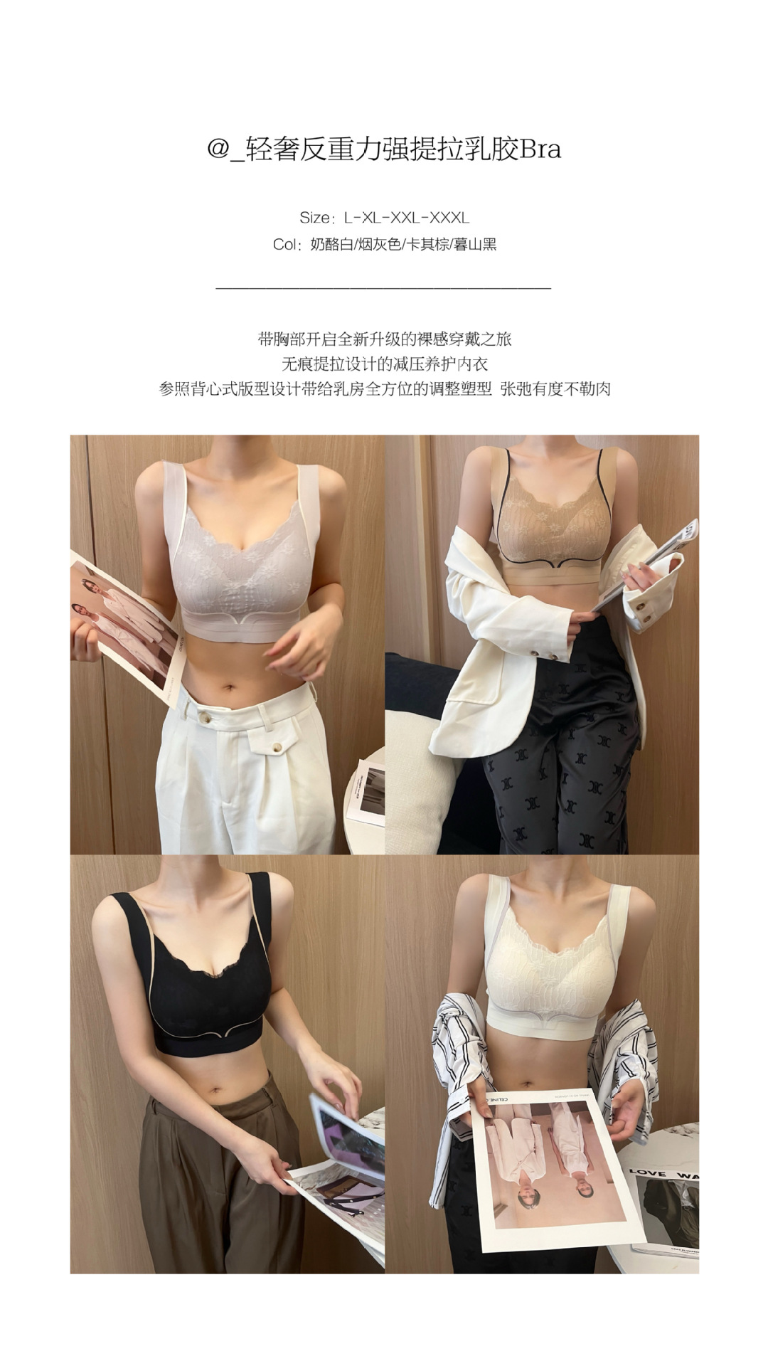 【200斤也能轻松驾驭💃】0压感无痕大码文胸🔥聚拢上托+收背塑型,蕾丝优雅还超舒适!新款大码背心文胸 200斤无痕软提拉蕾丝内衣 女聚拢上托防外扩胸罩