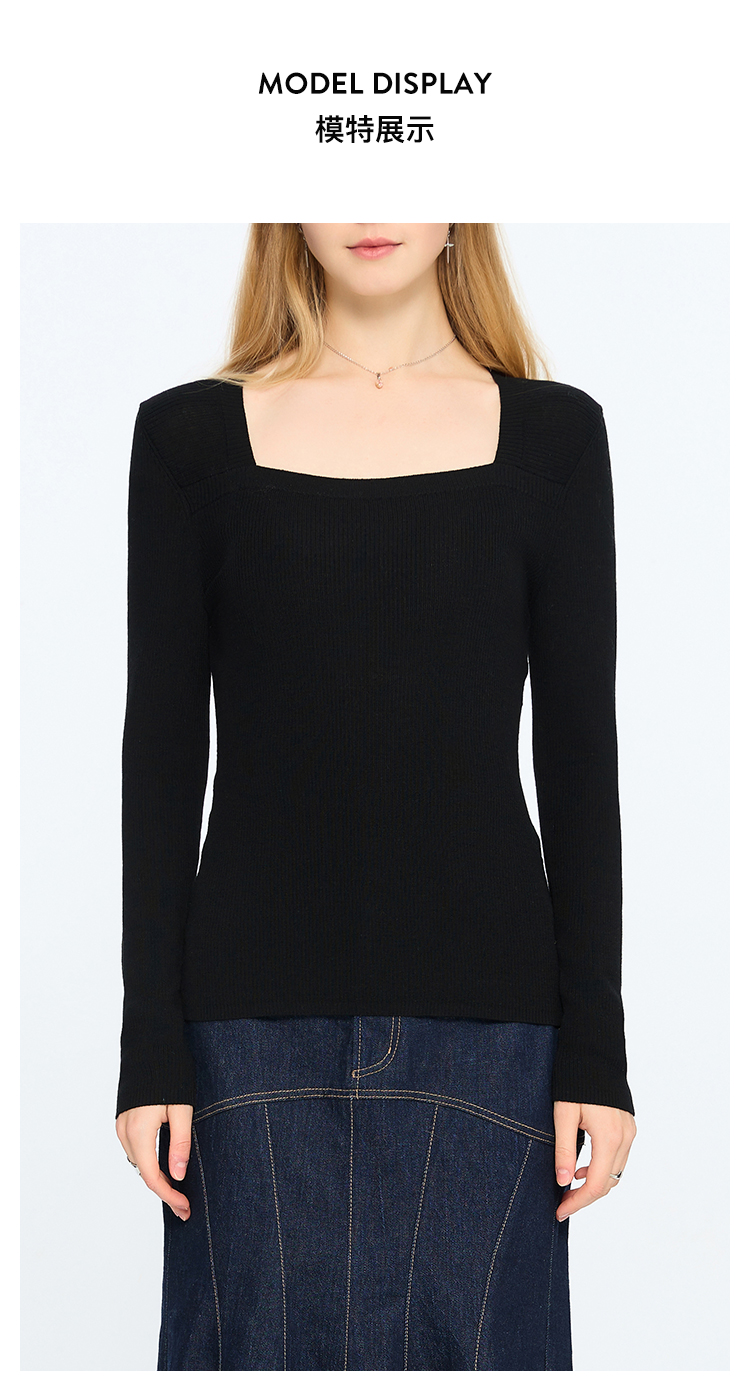 【JASON WU】方领羊毛复古百搭内搭通勤上衣针织衫女
