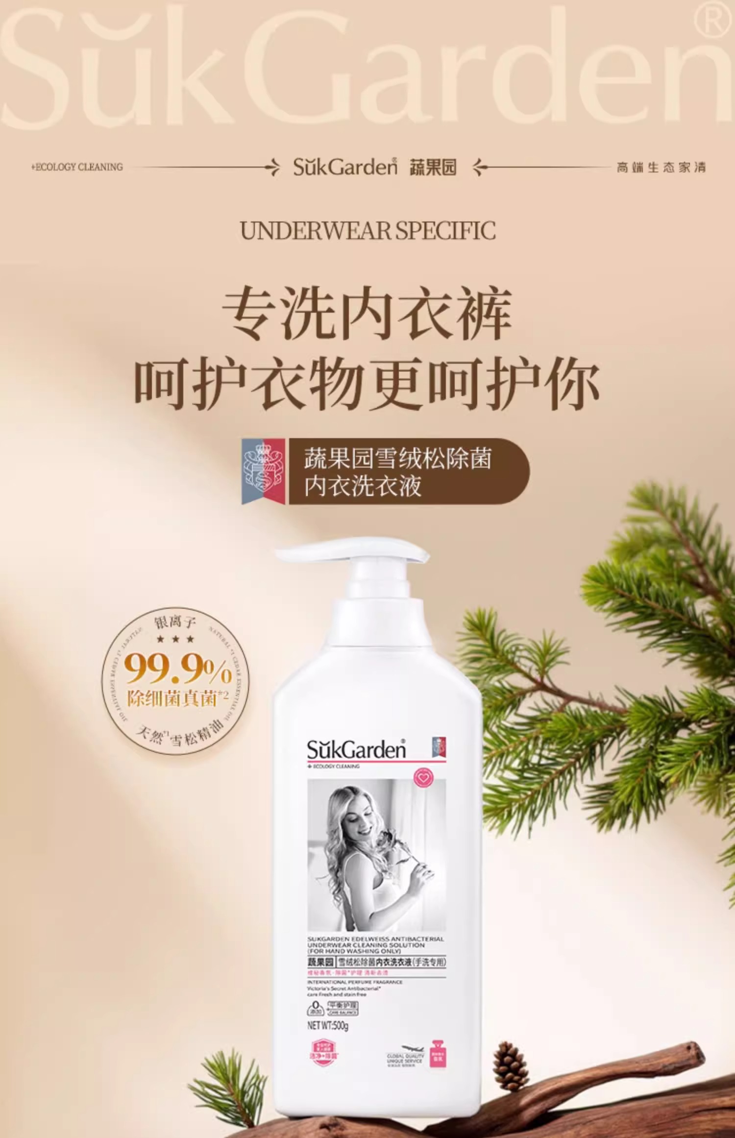 【蔬果园雪绒松除菌内衣洗衣液】蔬果园内衣内裤清洗衣液专用杀菌抑菌剂男女士通用