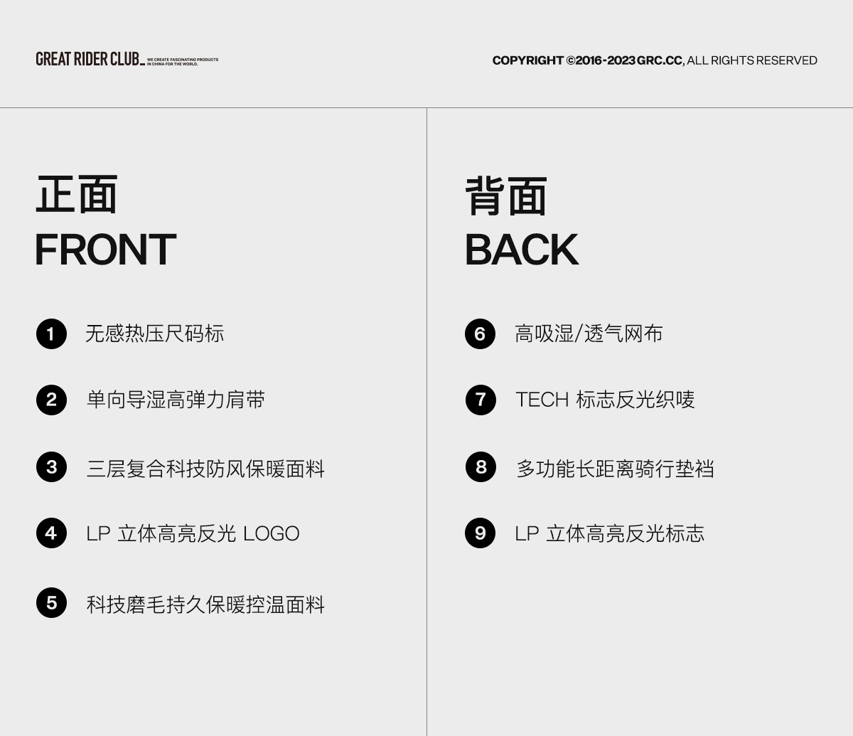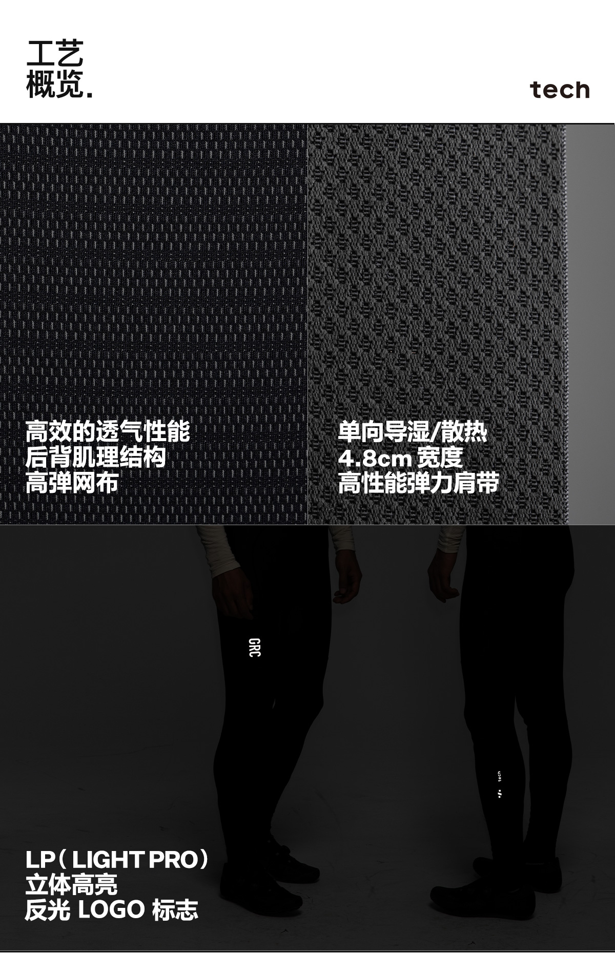 GRC桀骜无尽秋冬新款TECH三层防风抓绒保暖背带自行车骑行长裤男