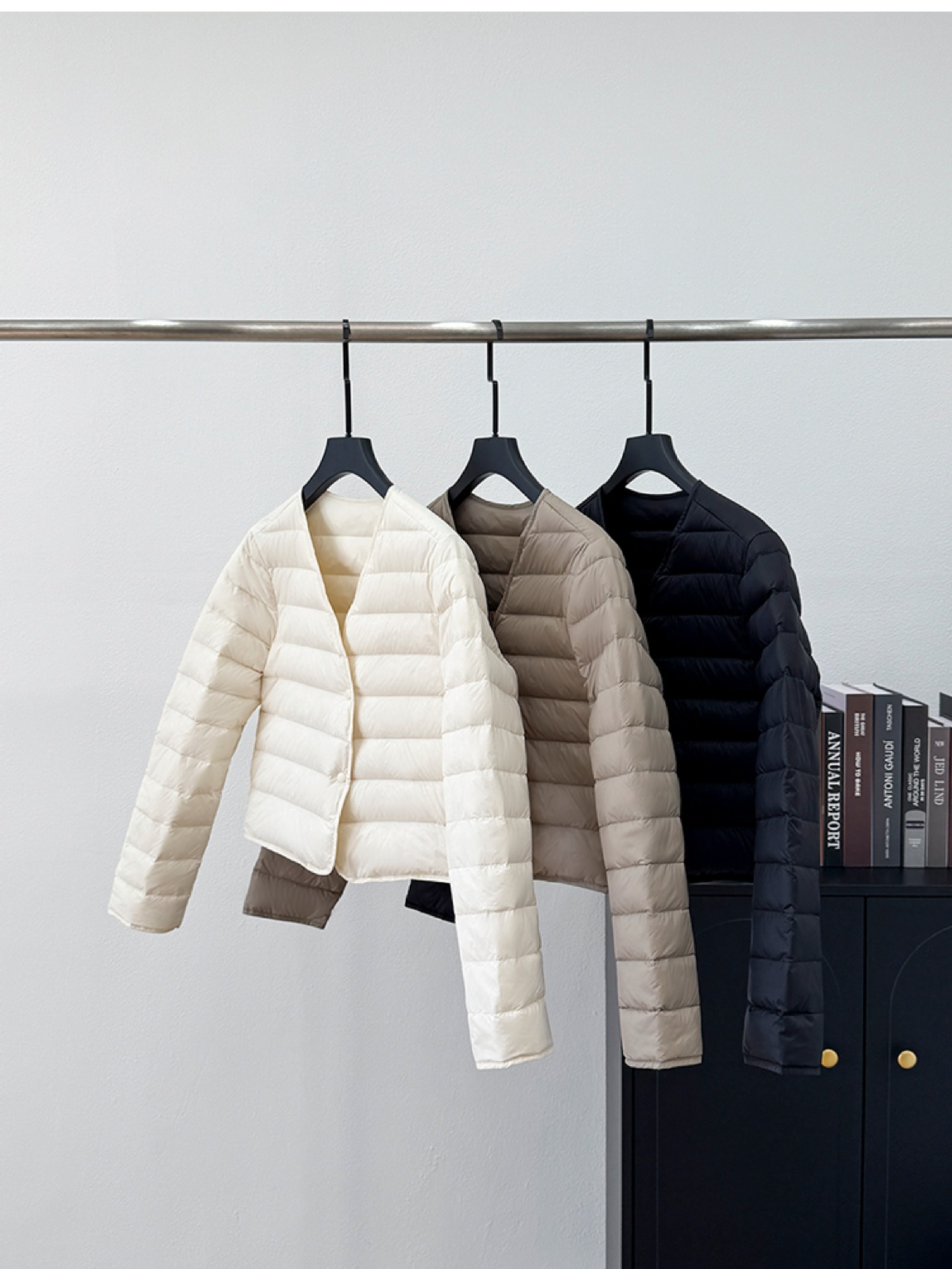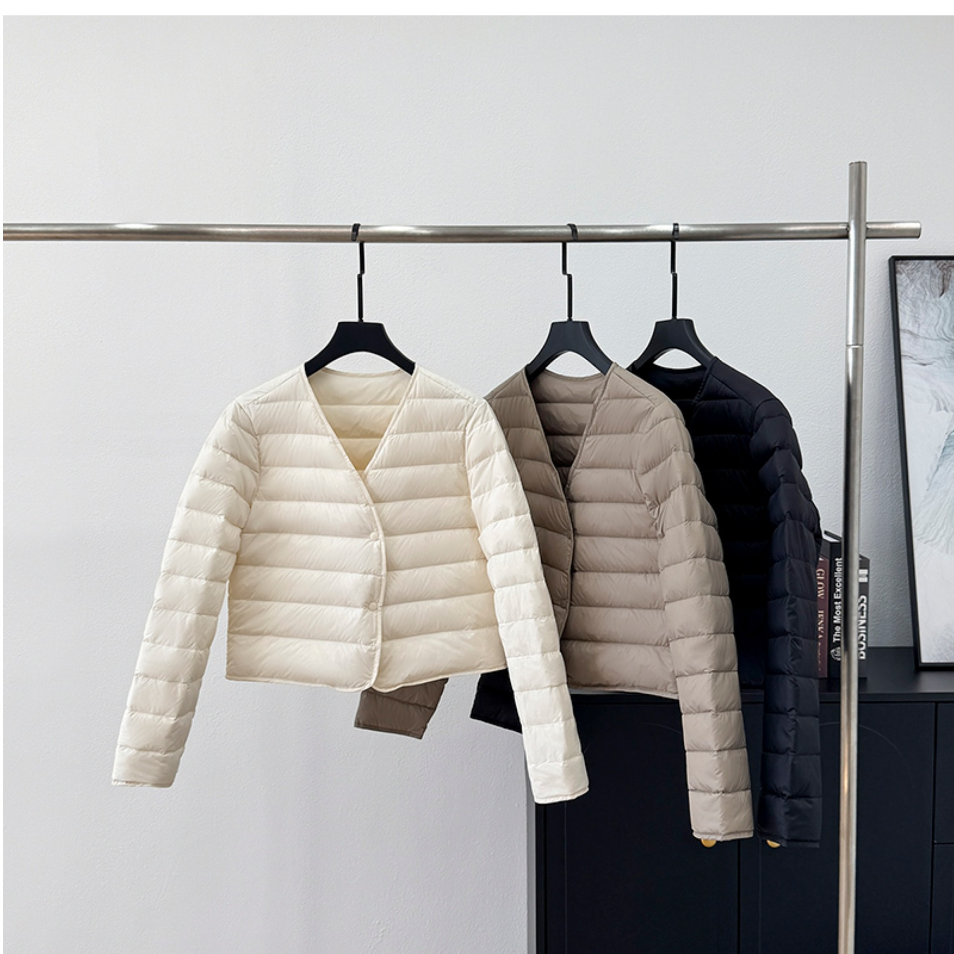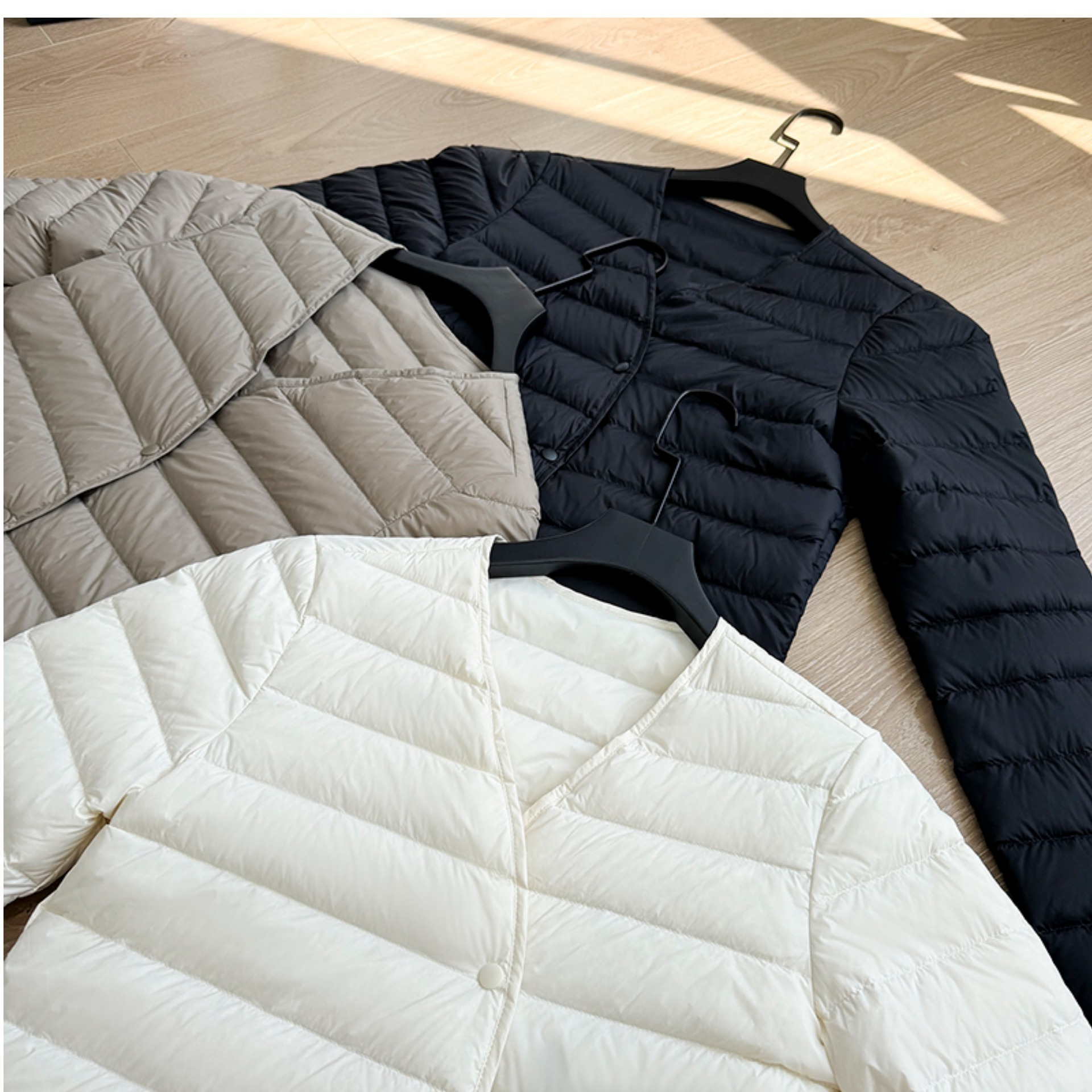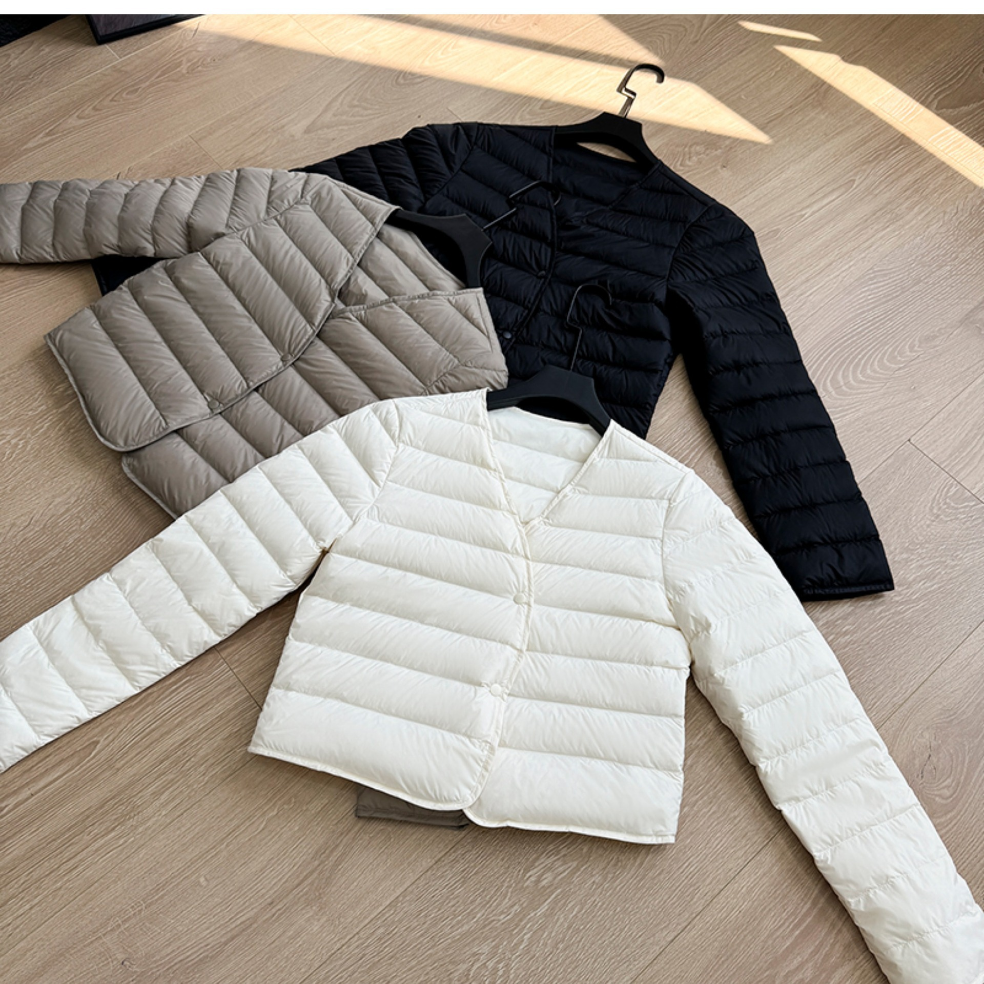 【冬季女装 】(预售3-7天)90%白鹅绒长袖羽绒内胆女短款内搭V领轻薄修身可打底可外穿鹅绒服