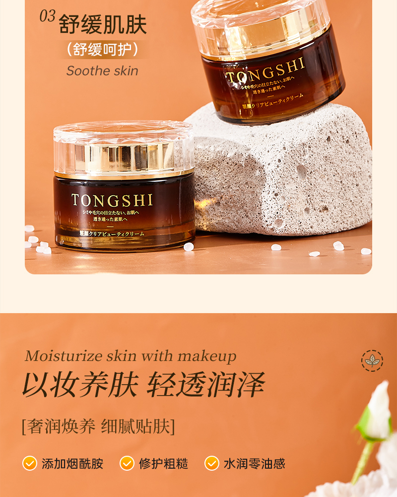 【以妆养肤 遮瑕 亢氧葆湿 服帖 亢皱紧至 零油感】妆颜清透素颜霜 50g TONGSHI 日本