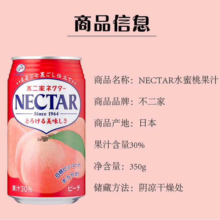 日本不二家FUJIYA NECTAR美味白桃汁水蜜桃子30%浓果汁饮料350ml(220154)