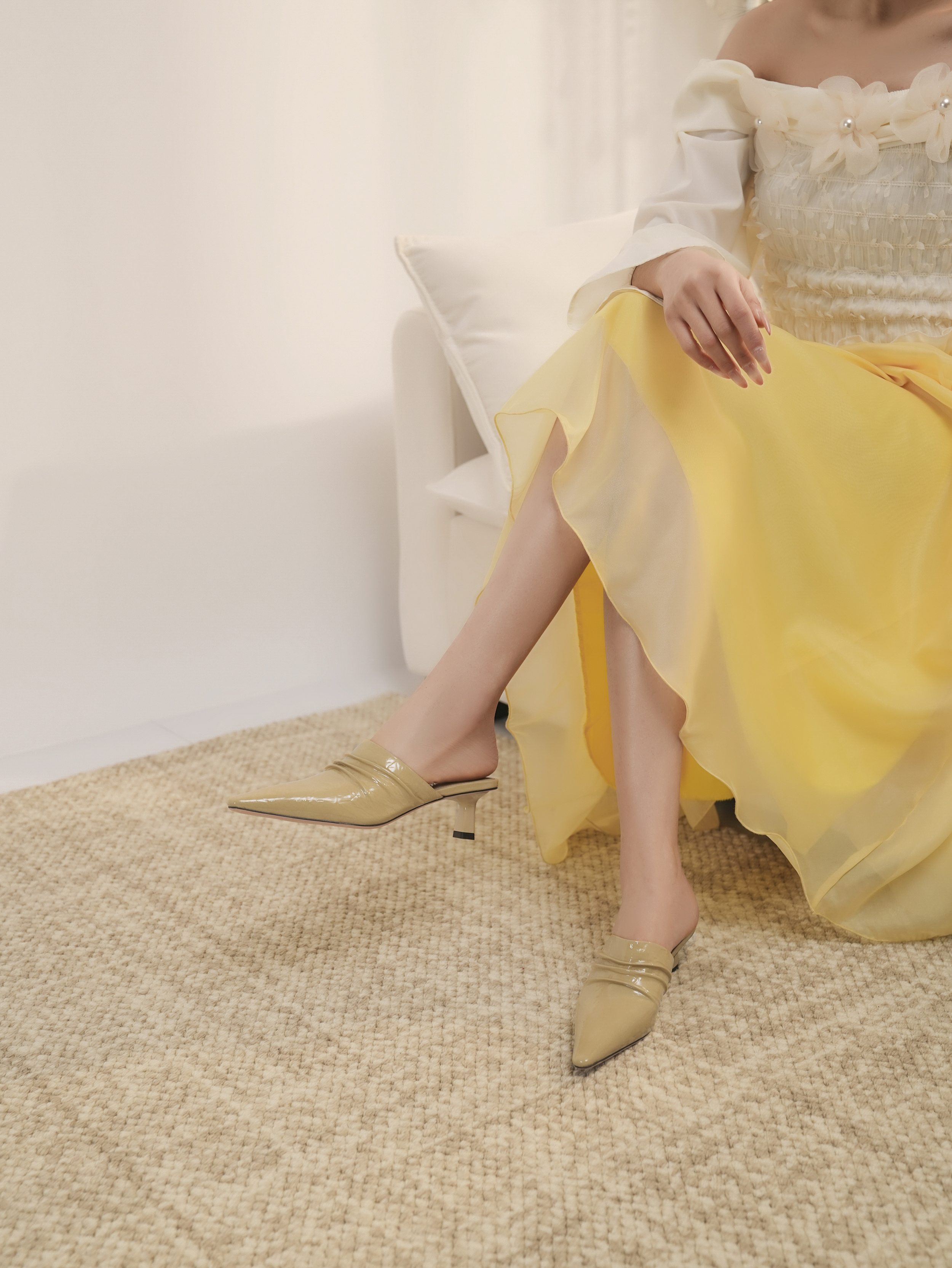 豪麟名鞋迪嘉女鞋穆勒鞋牛移膜革DJYYA61WB004黄色