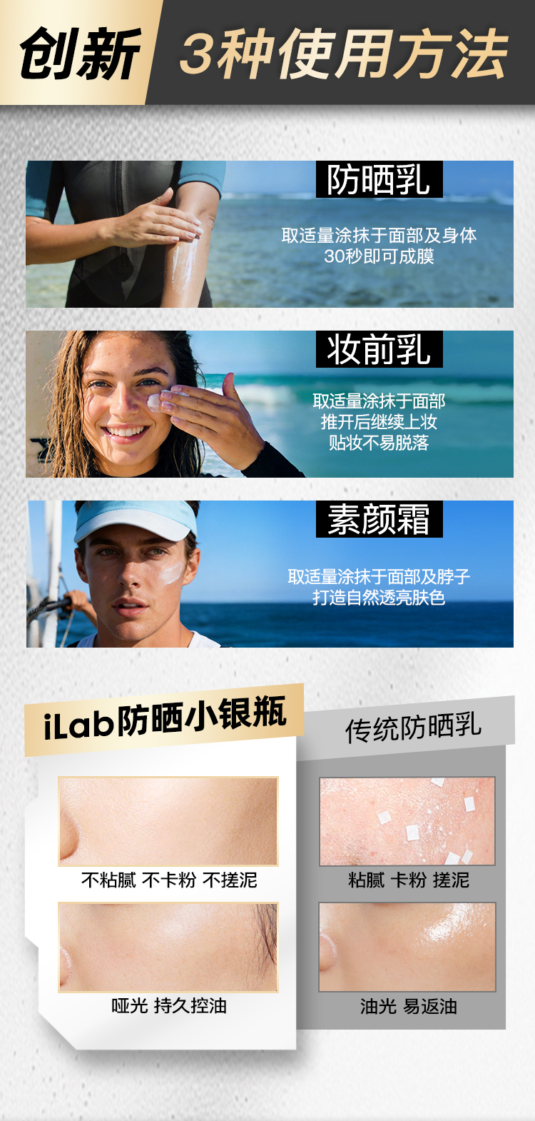 iLab艾莱博防晒小银瓶(提亮)精华乳/12小时/防水防汗/不辣眼睛35g