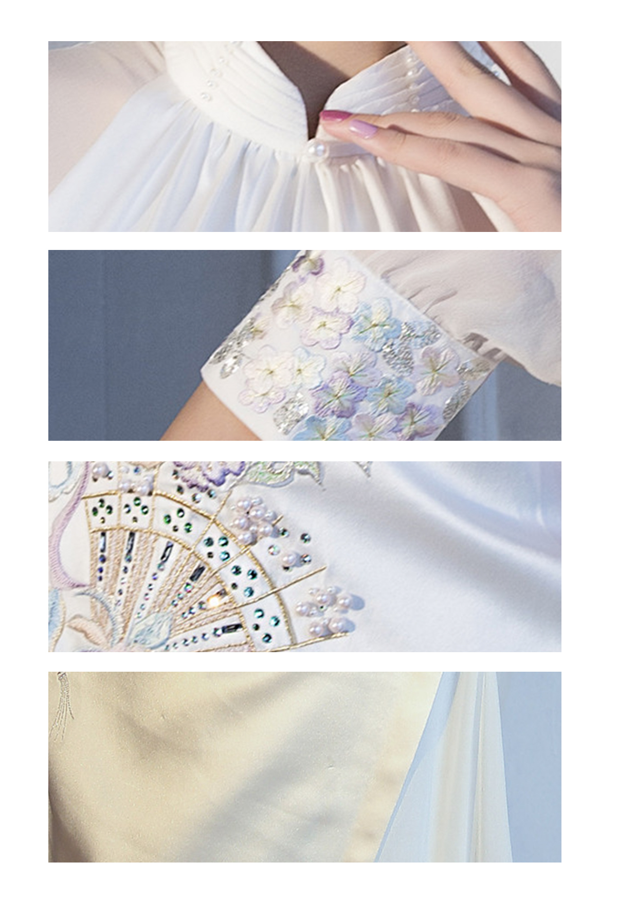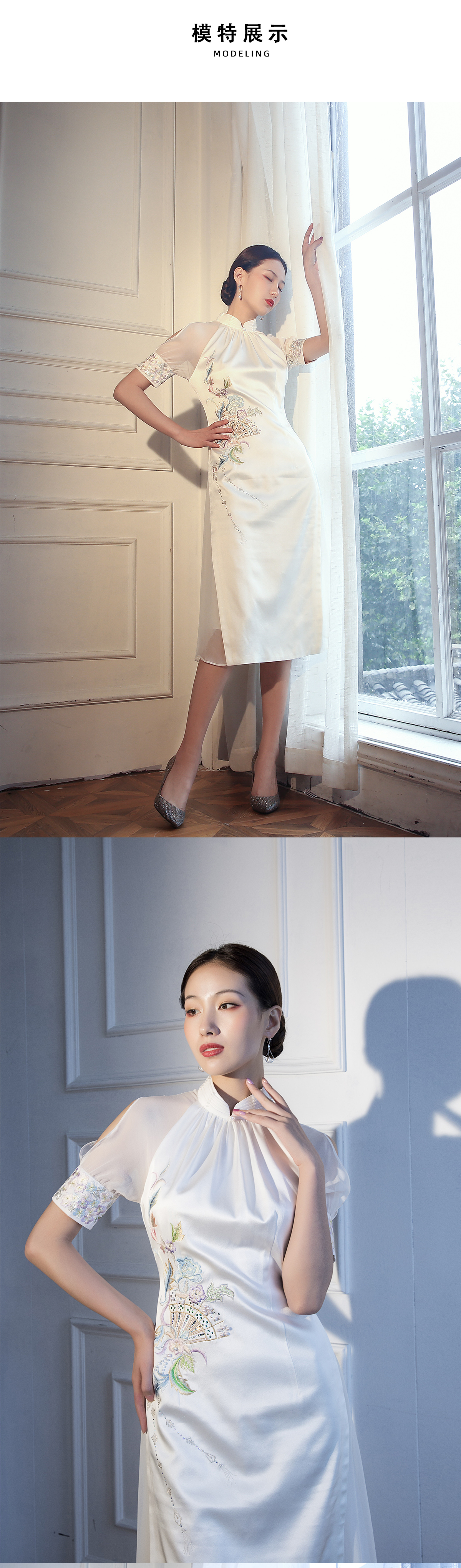 荷言HEYEN含露 明星同款余霜手工盘金绣花真丝旗袍 高端定制时装周大秀