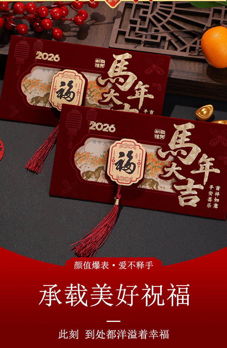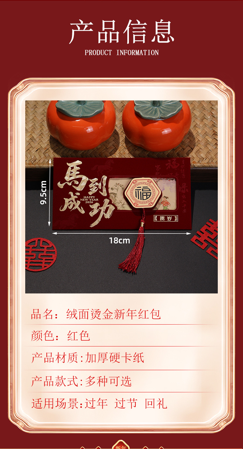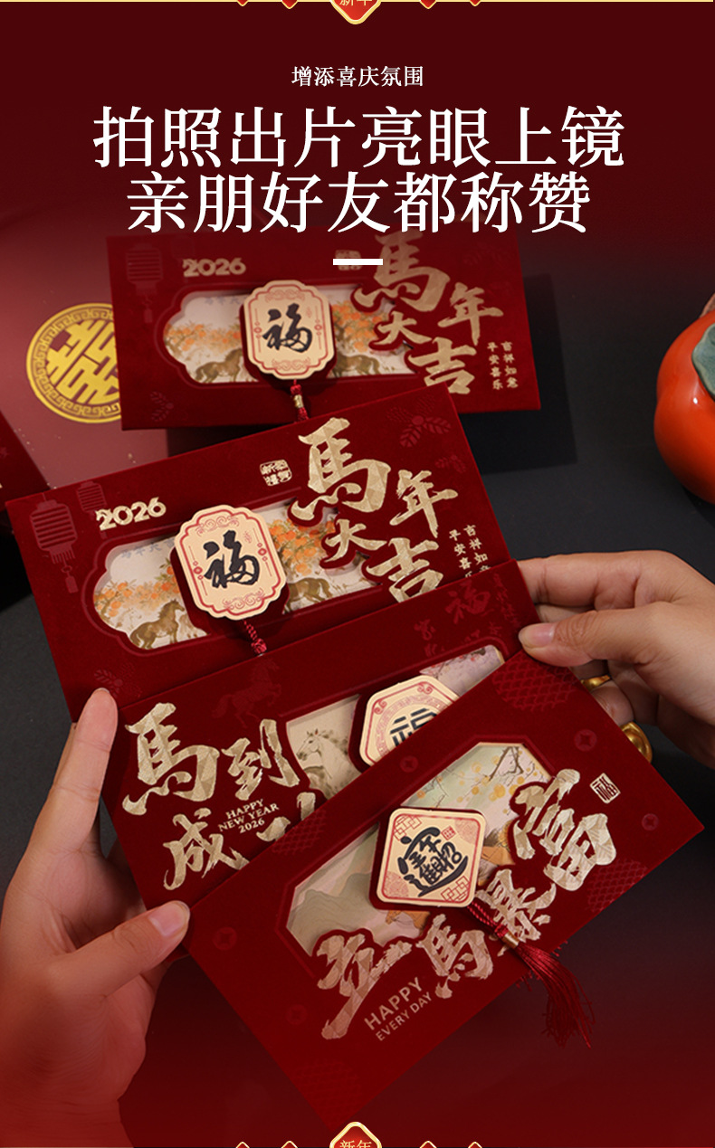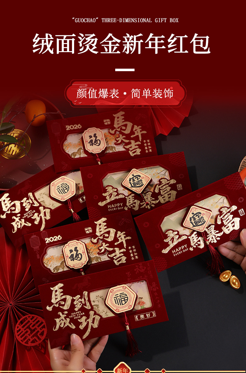 2026马年创意新年利是封高档绒布春节红包拜年压岁包红包袋定制