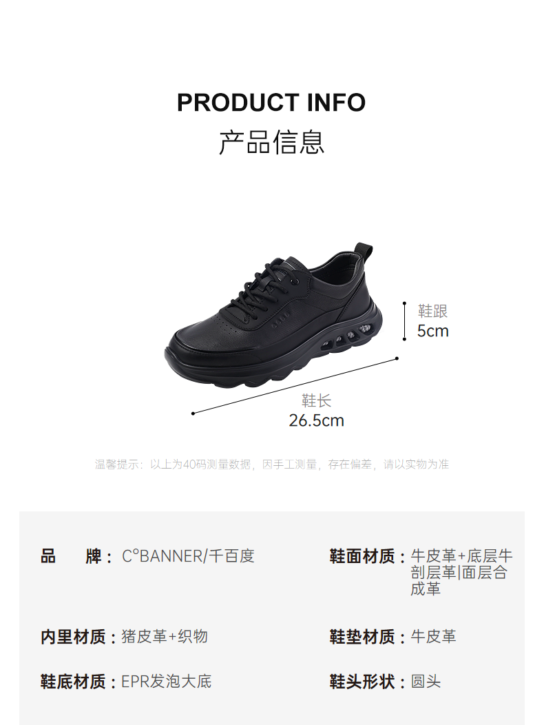 千百度秋季商务休闲鞋牛皮革脚垫通勤会议通用男鞋A25416504