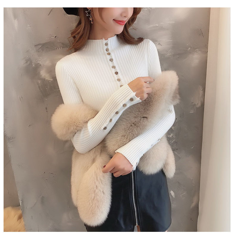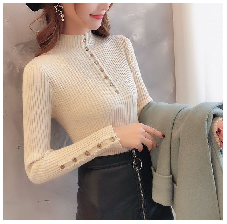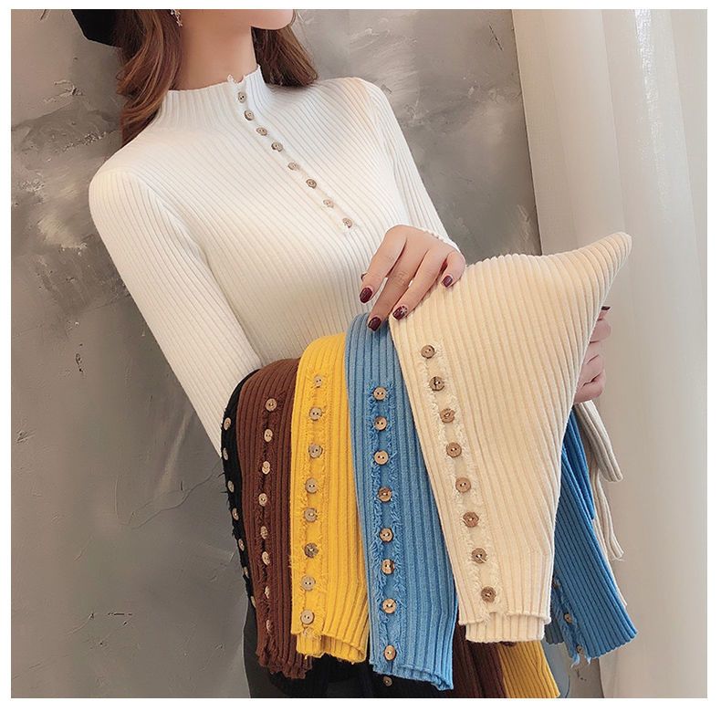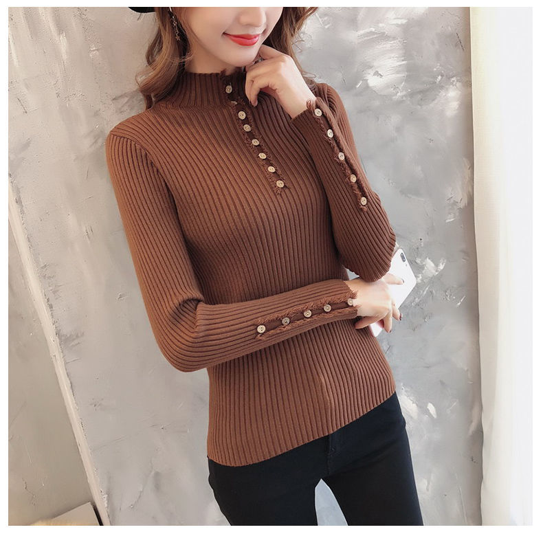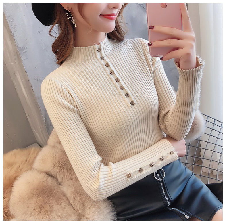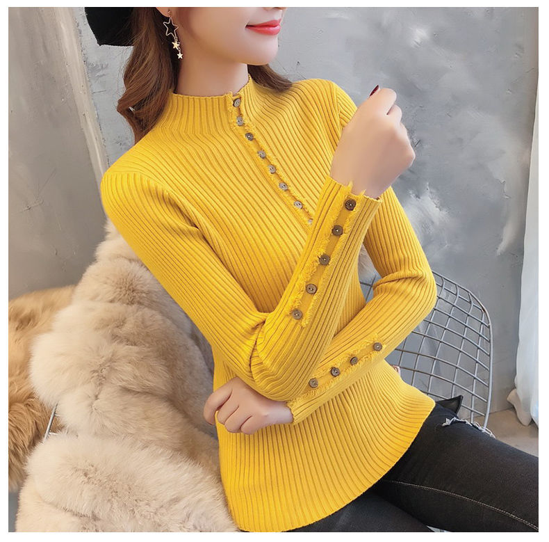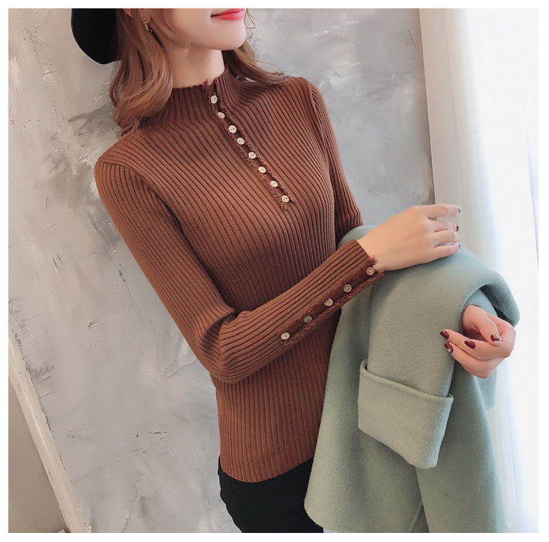 【长袖内搭打底衫】秋冬半高领毛衣女套头修身显瘦纽扣针织衫上衣