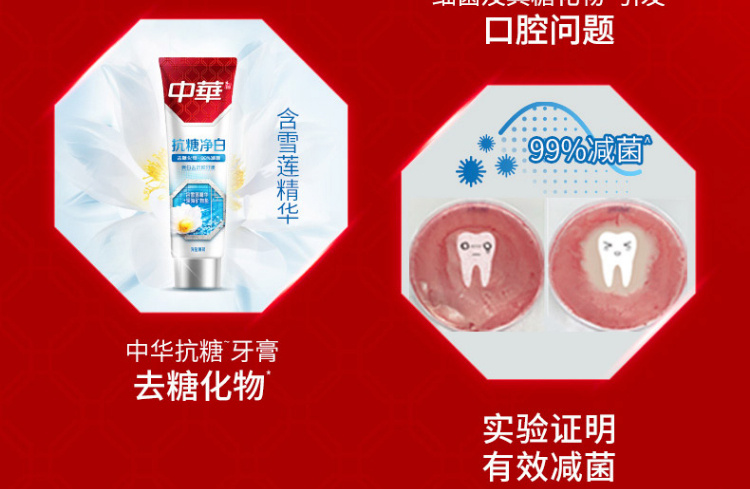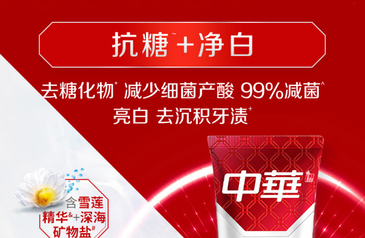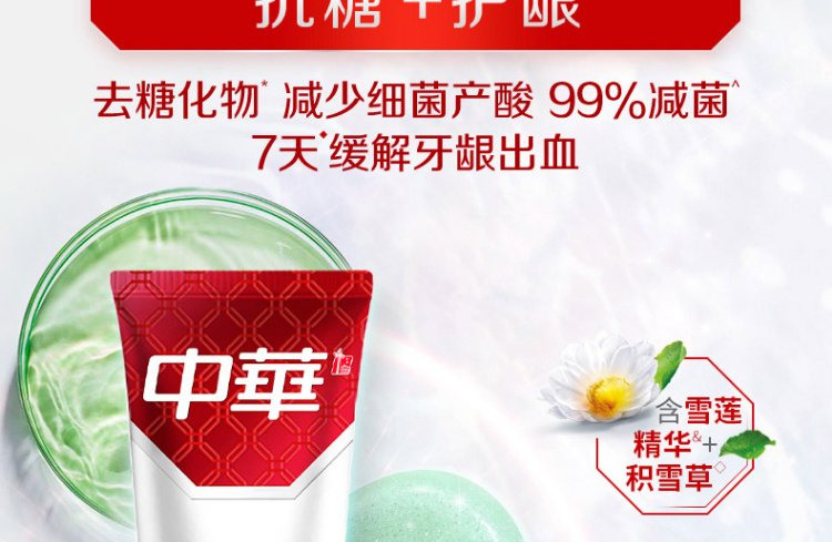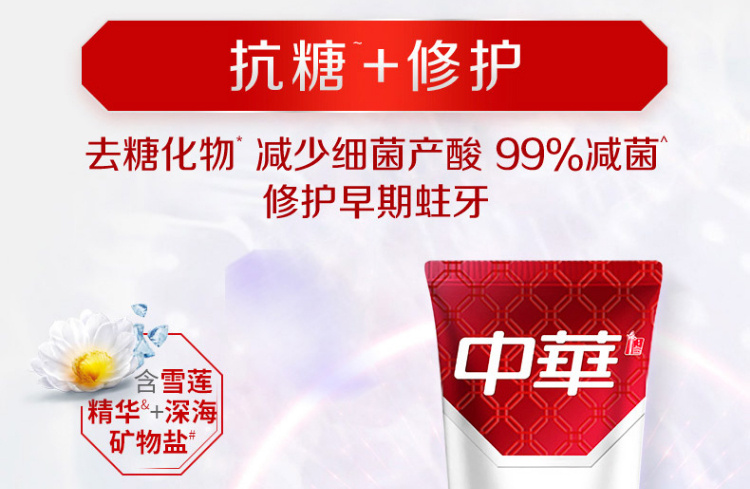 【特价】中华抗糖/花清护/健齿白牙膏90g