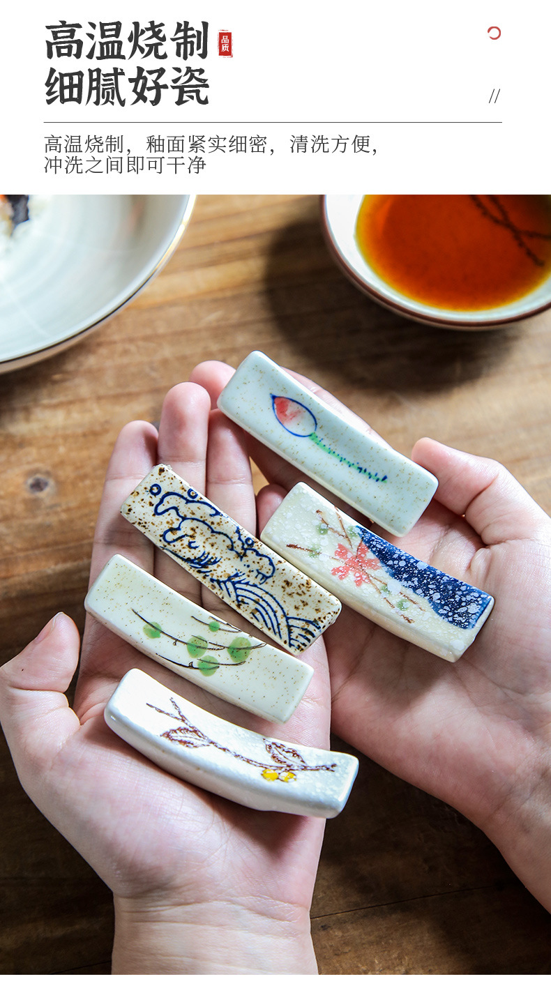 【出口筷勺托架】日式陶瓷筷子架家用勺子托架筷托餐厅酒店摆台餐具釉下彩和风筷枕