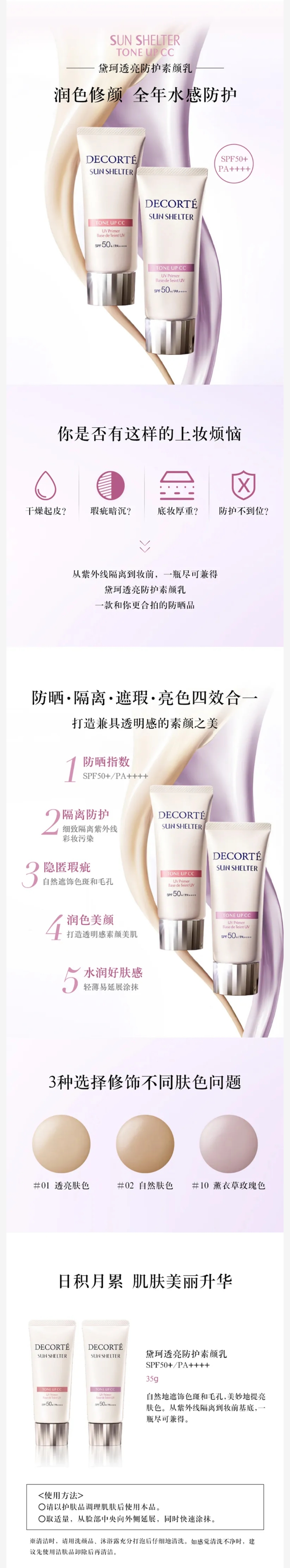 黛珂防晒CC霜多重防护素颜霜防晒隔离35g#01