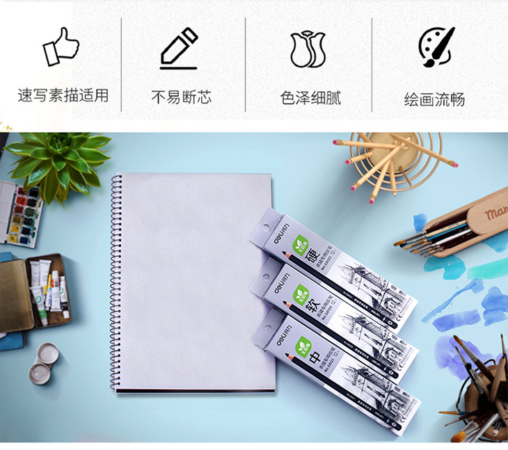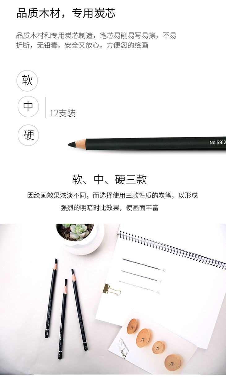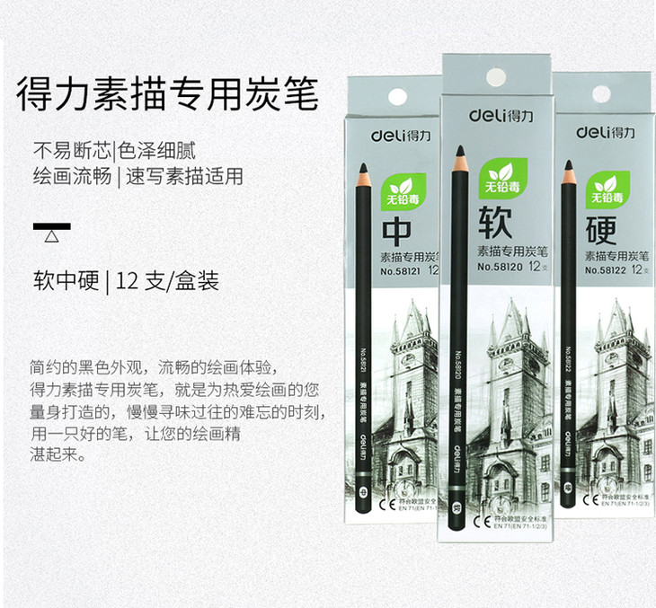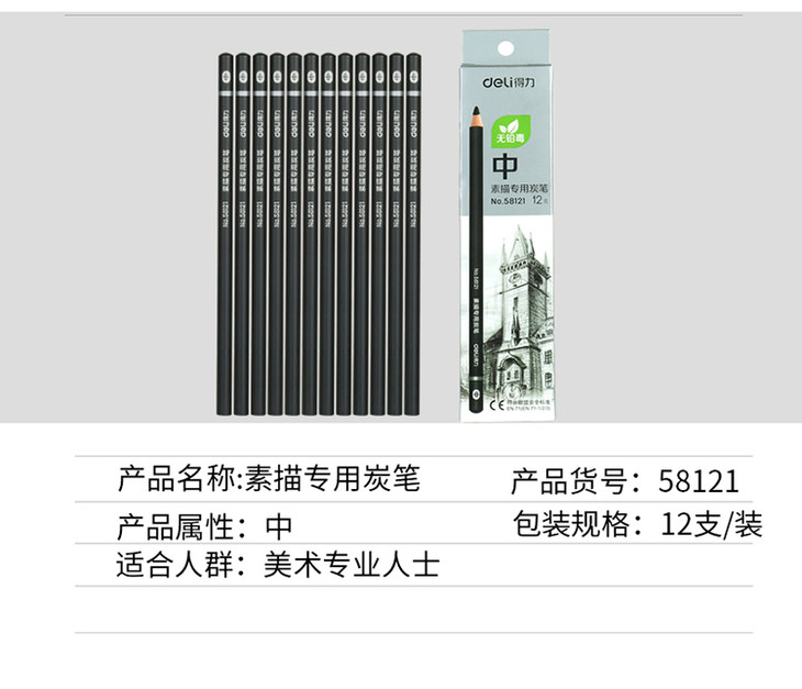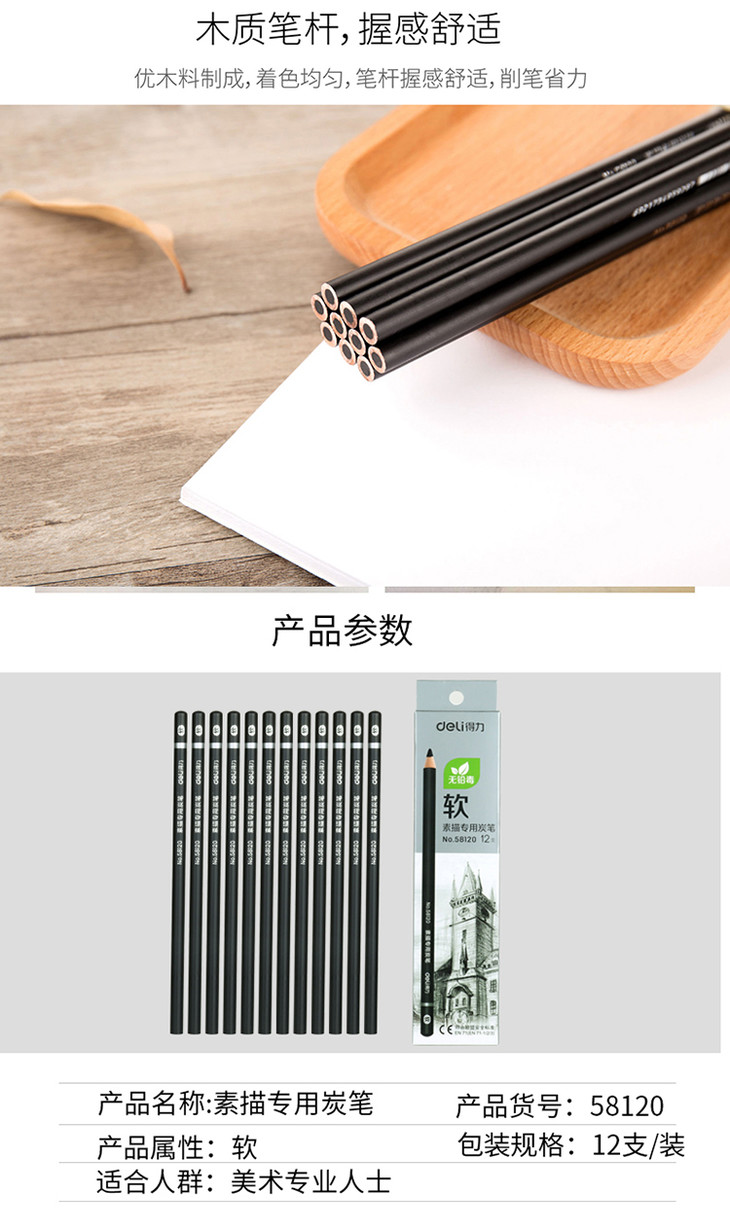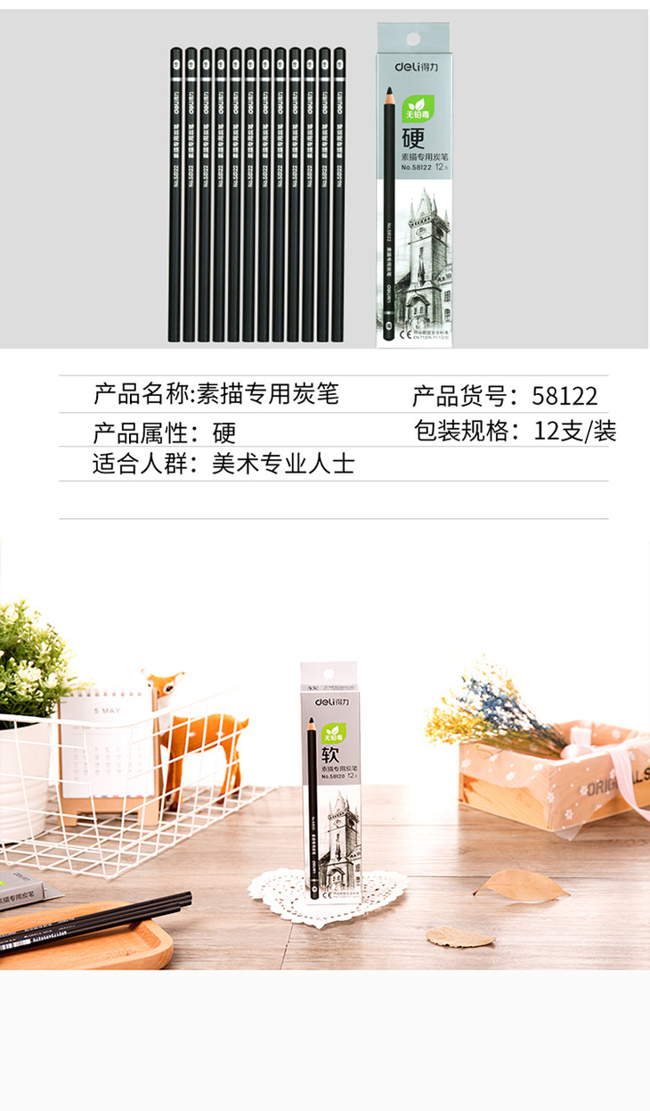 得力炭笔58120/58121(软、中碳)(黑)(7010)
