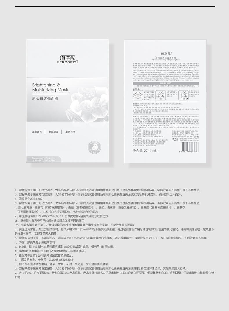 【新一代美白奶皮面膜】佰草集新七白美白透亮奶皮面膜 贴片式面膜 补水保湿 美白提亮 持美白特证面膜