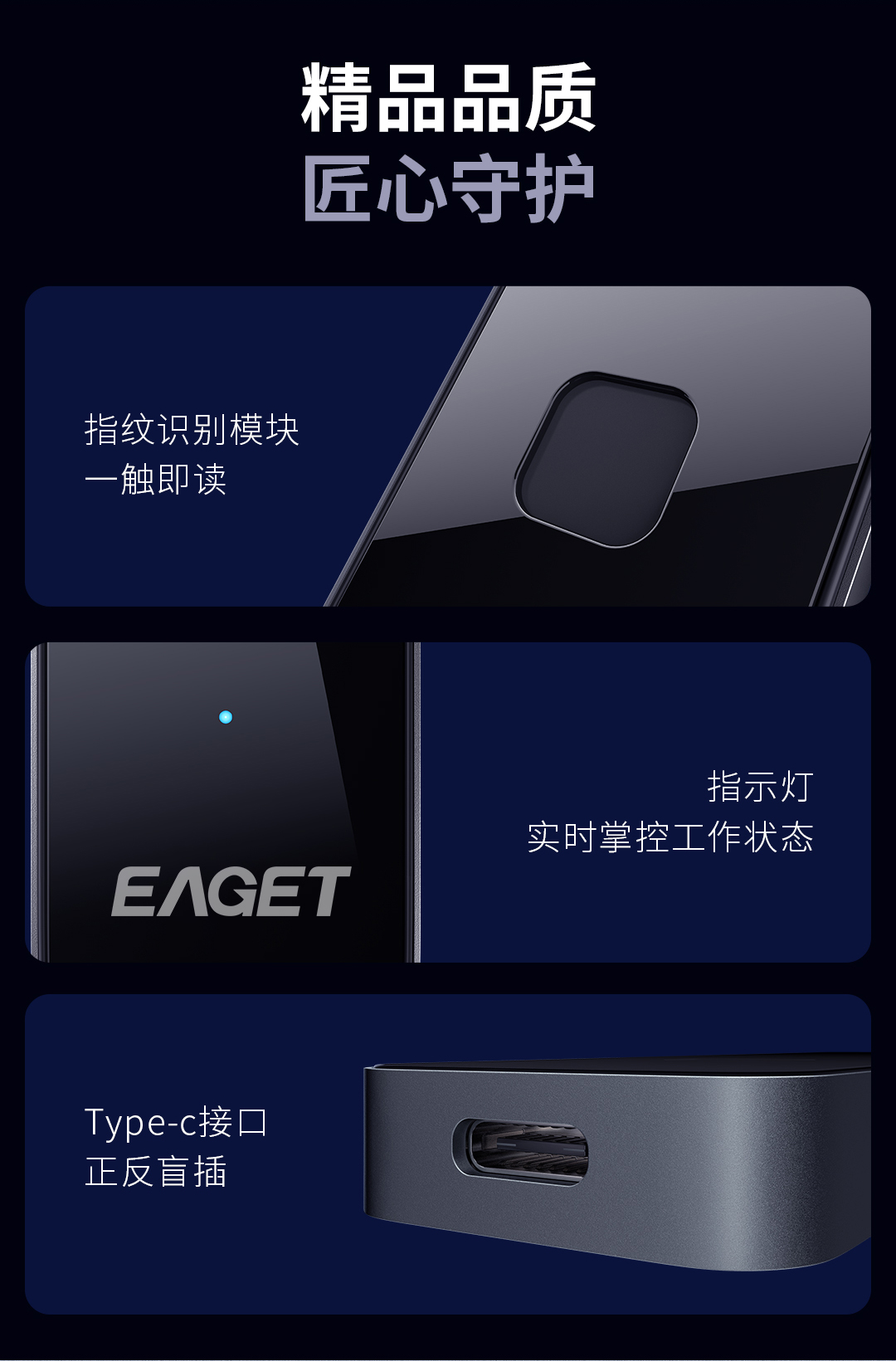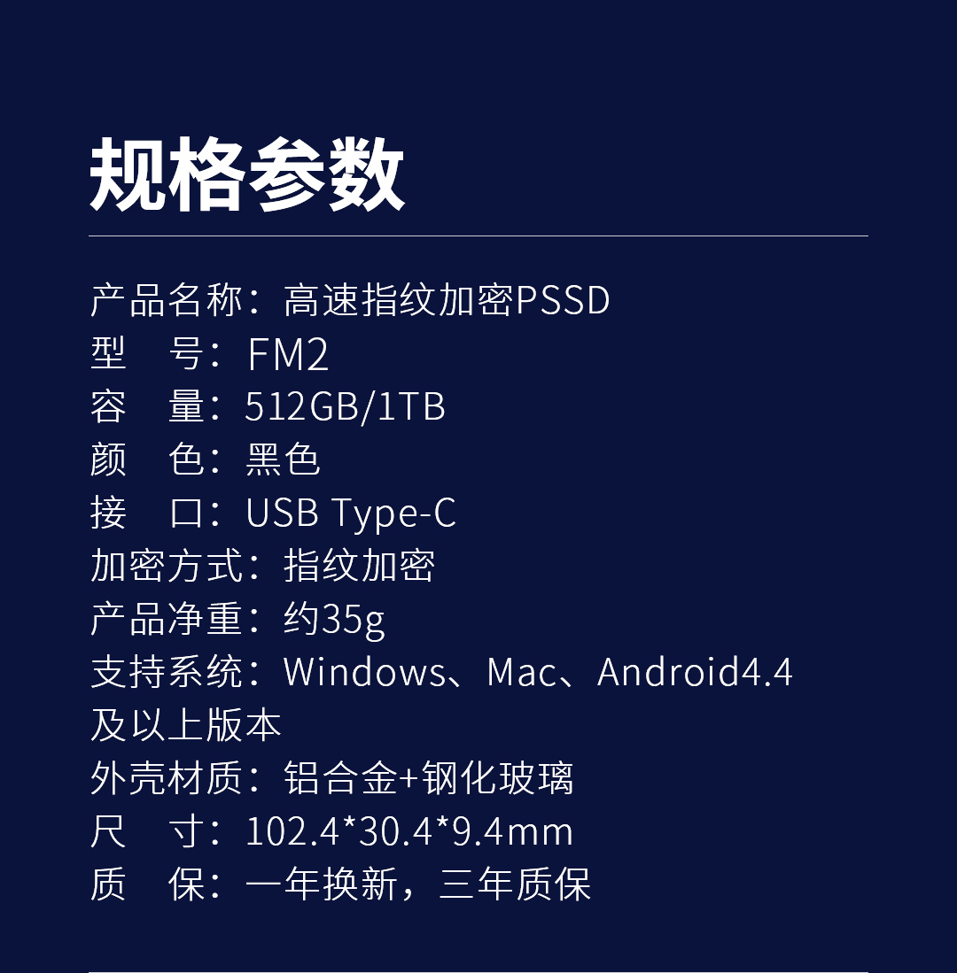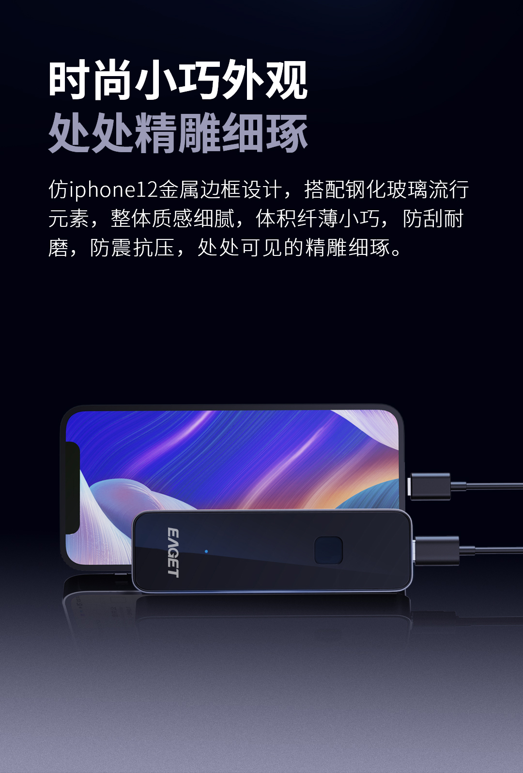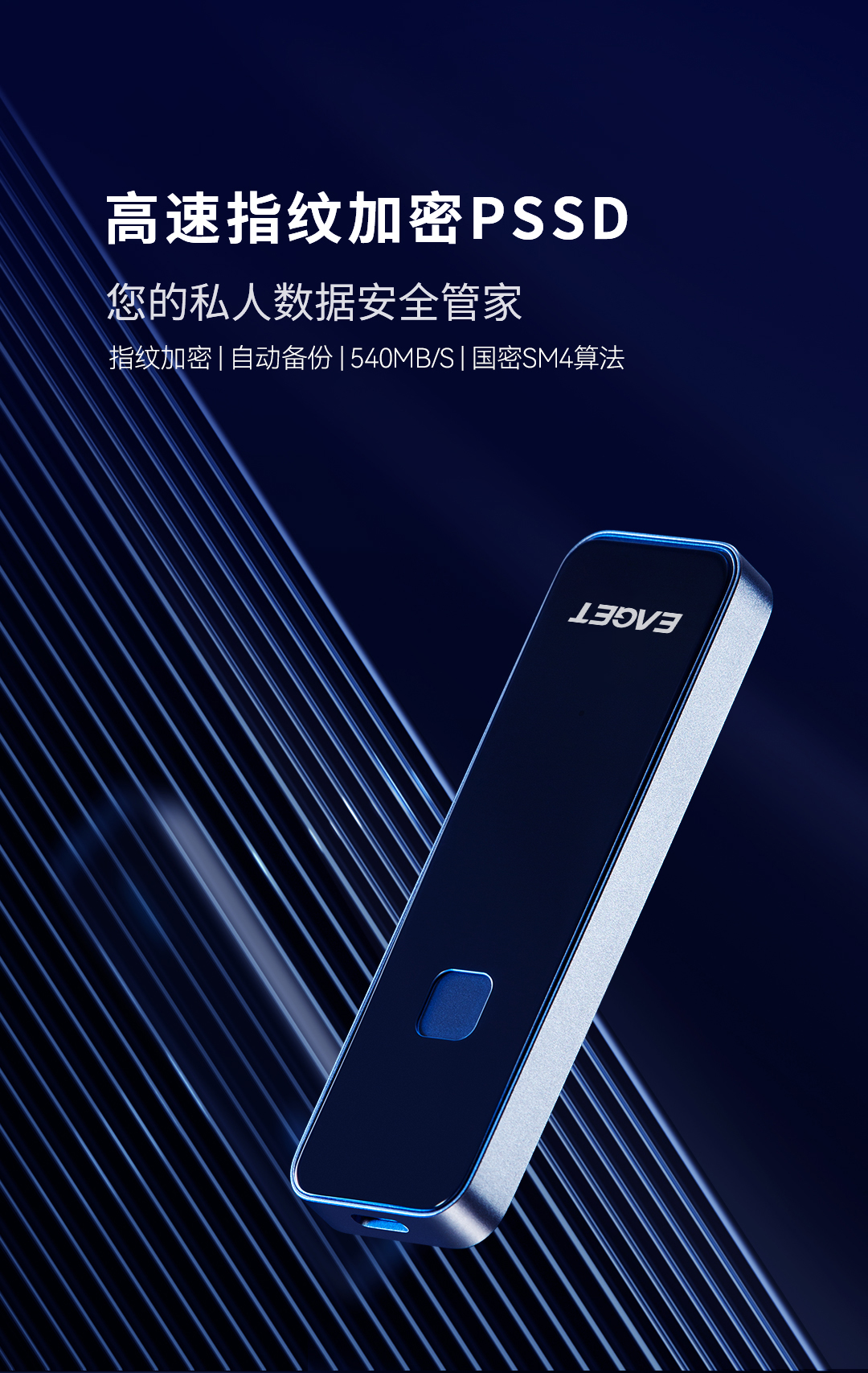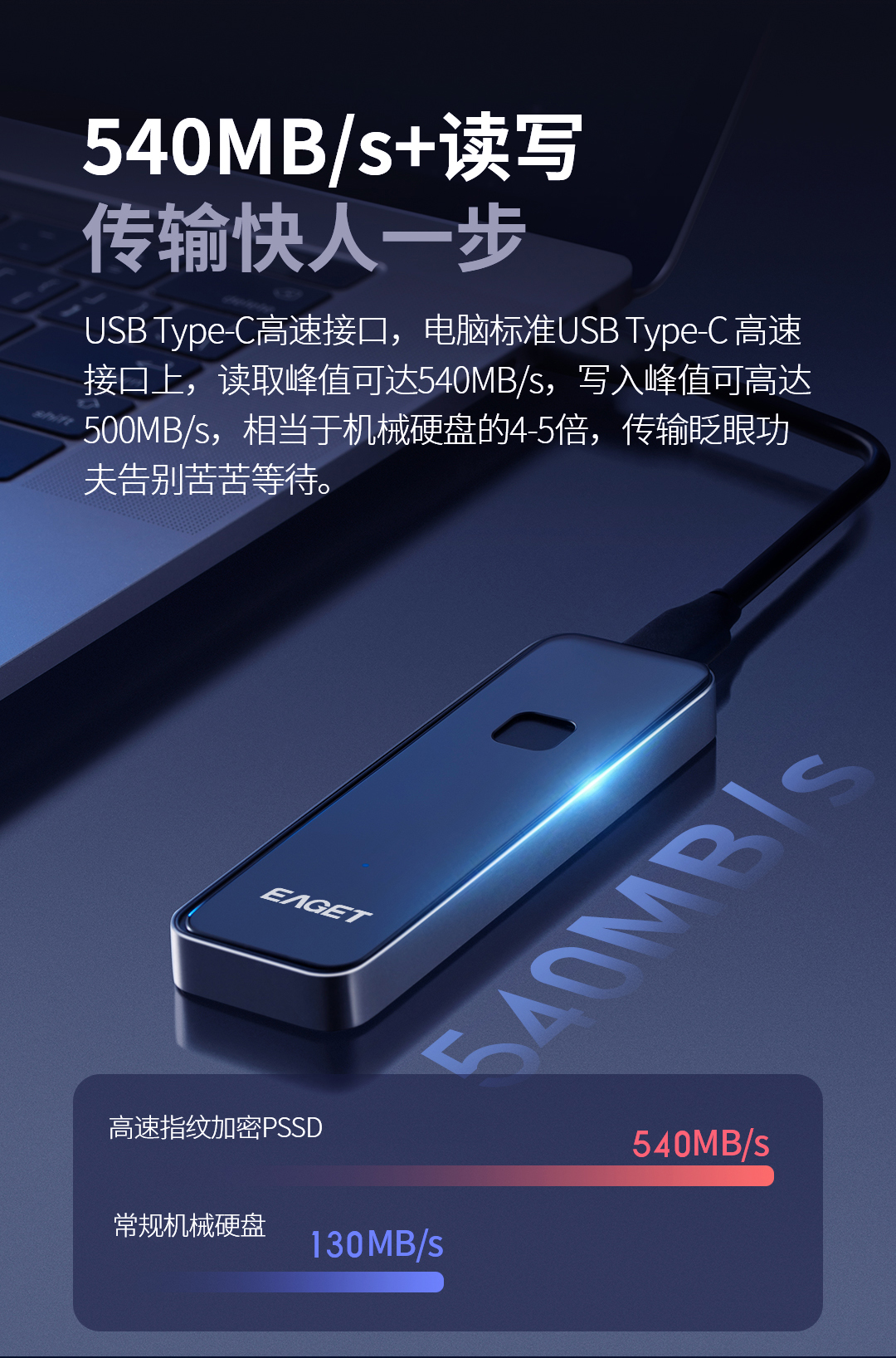 忆捷 512GB Type-c USB 3.2 移动固态硬盘(PSSD)FM2 指纹识别 SM4国密算法 传输高达540MBs 防震耐用安全防护