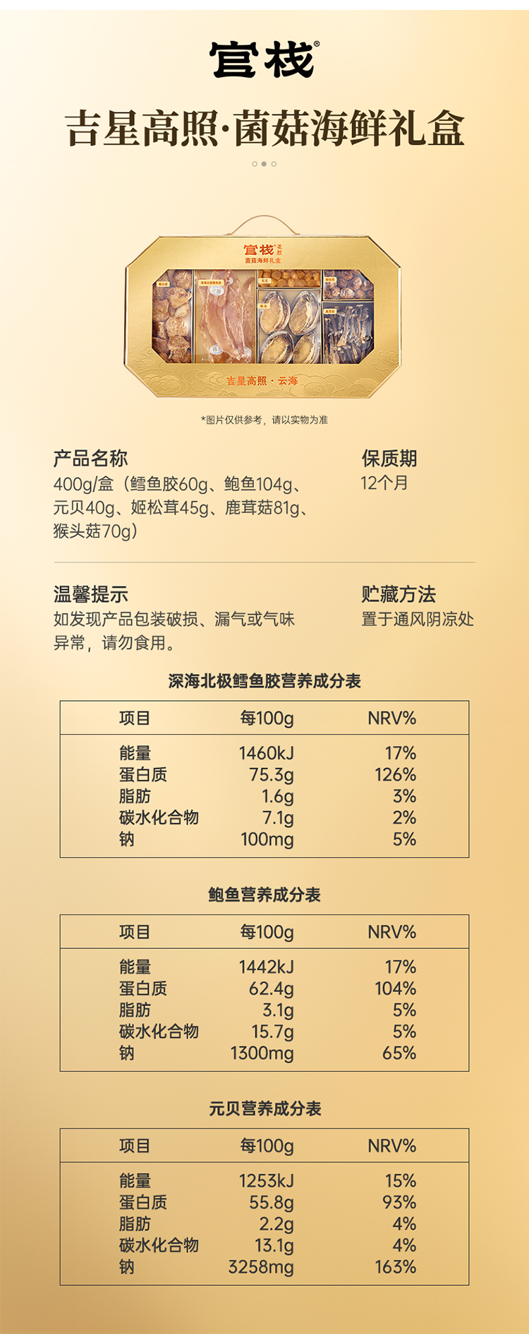 官栈 花胶鳕鱼胶 干货礼盒金蝶花胶 吉星高照六拼礼盒 400g*1盒