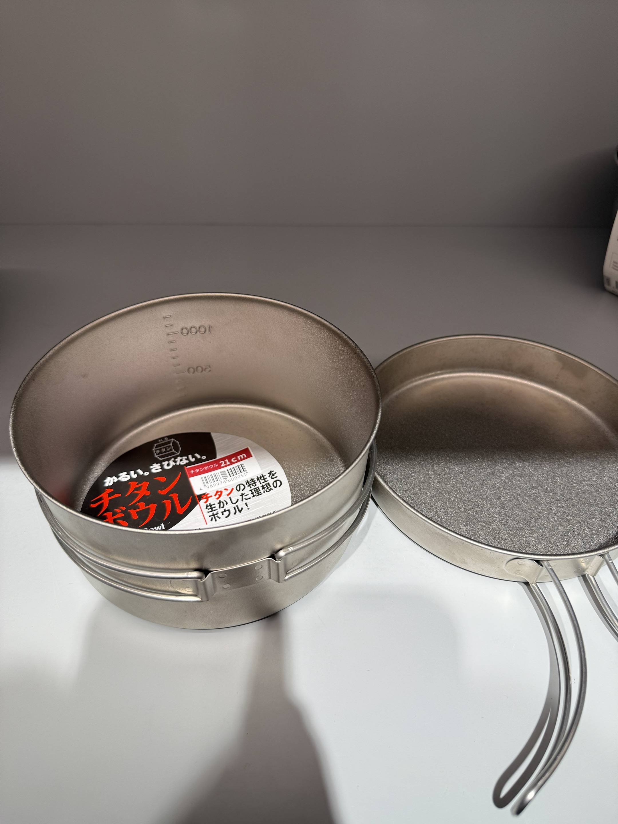 36100◇日本纯钛户外便携野炊锅具套装15cm 1300ml