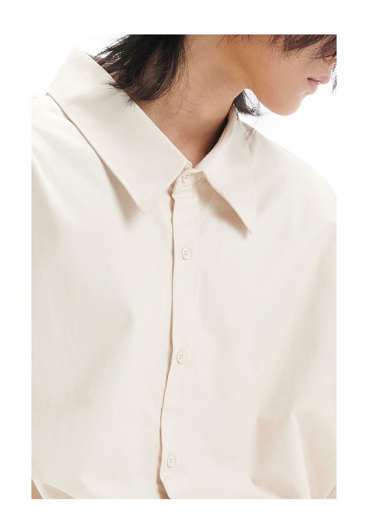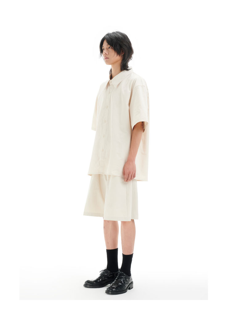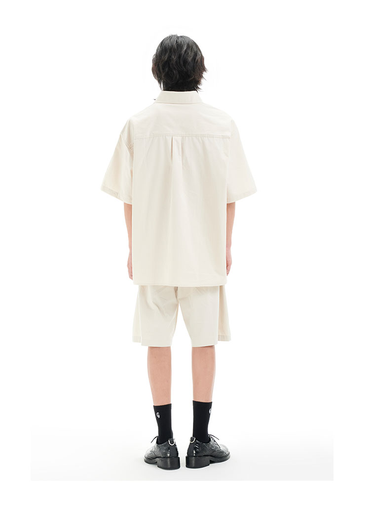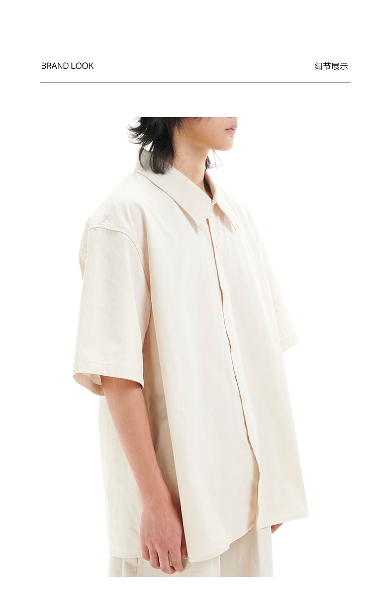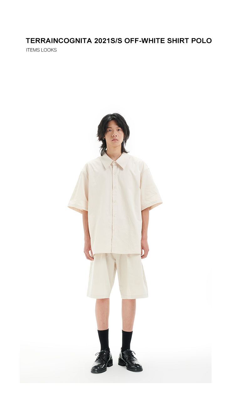 TERRAINCOGNITA21SS米白色宽松廓形百搭休闲衬衫基础通勤短袖男女