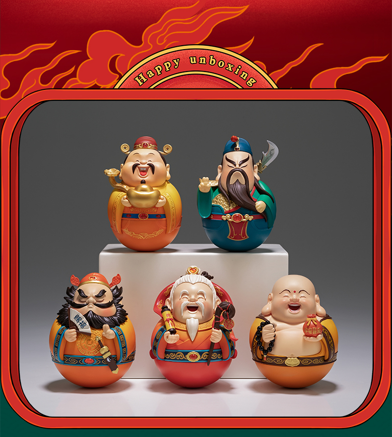 欢喜小将《钟馗弥勒月老财神关公》开运好物解压桌摆不倒翁礼物