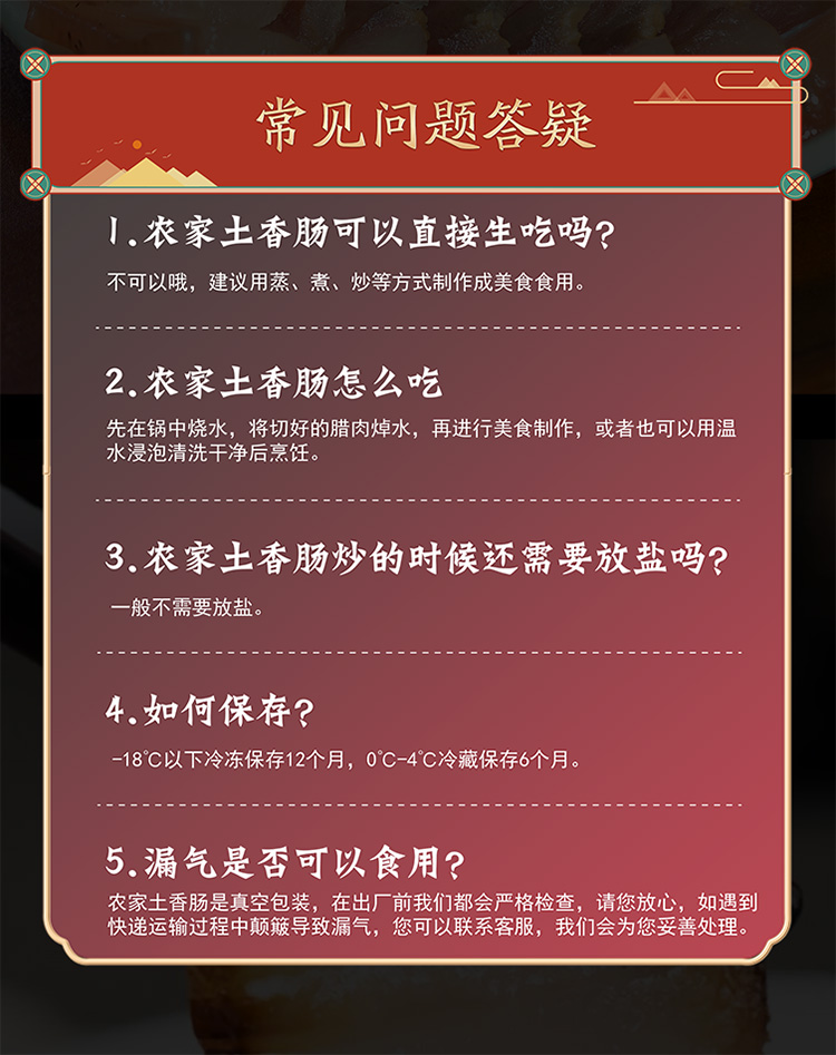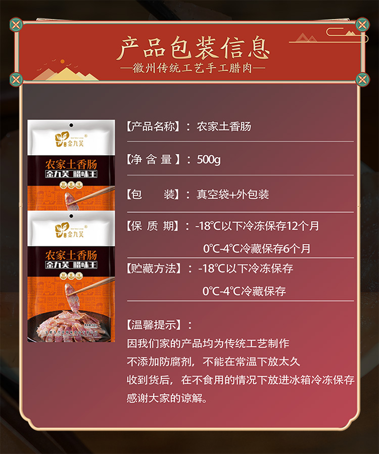 【产品名称】「金九芙」农家土香肠(原味/酱味)2袋*500g