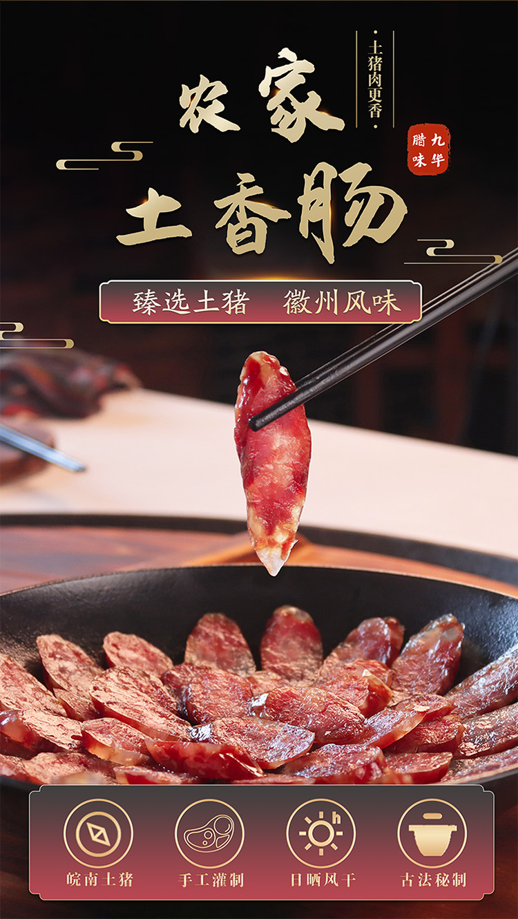 「金九芙」农家土香肠(原味/酱味)肉质好 味道鲜 生态散养 食五谷 饮山泉 运动量大 生长周期长 最低300天以上才可出栏
