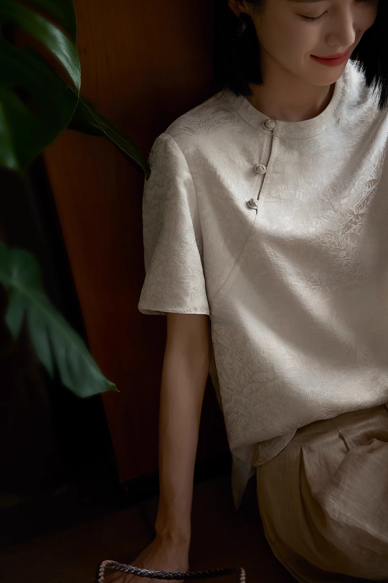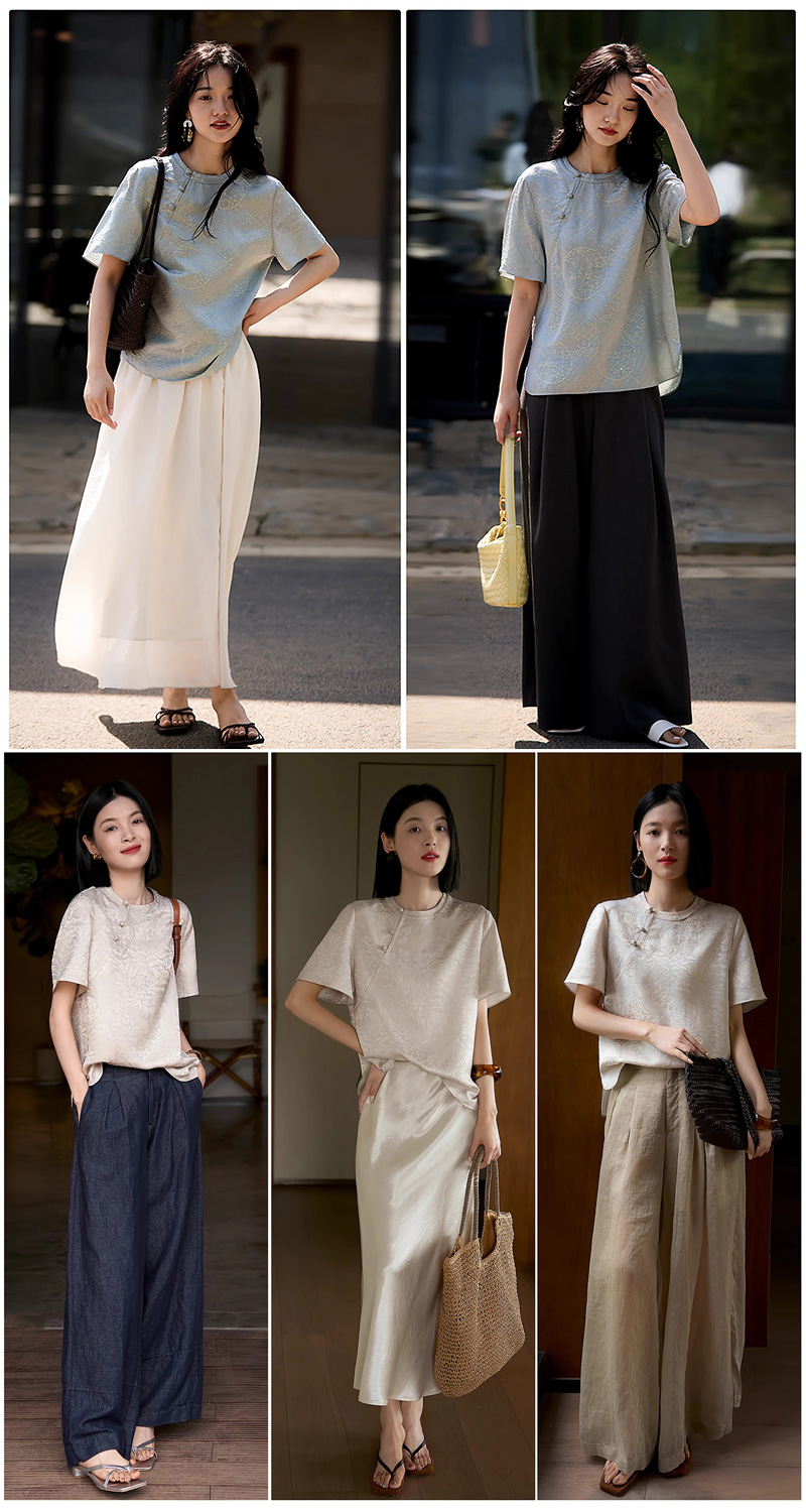 产品名:姹弥·提花斜襟盘扣上衣