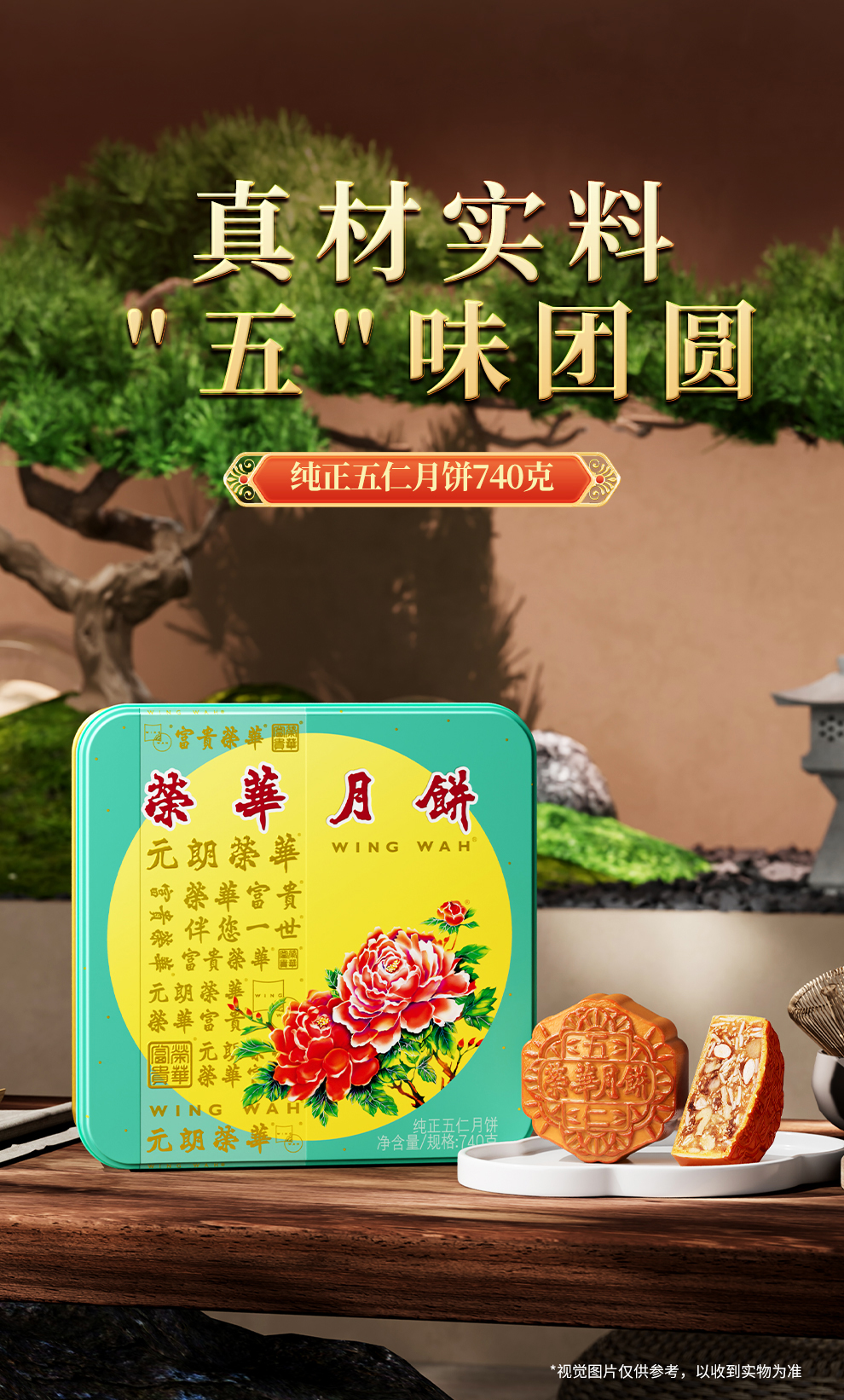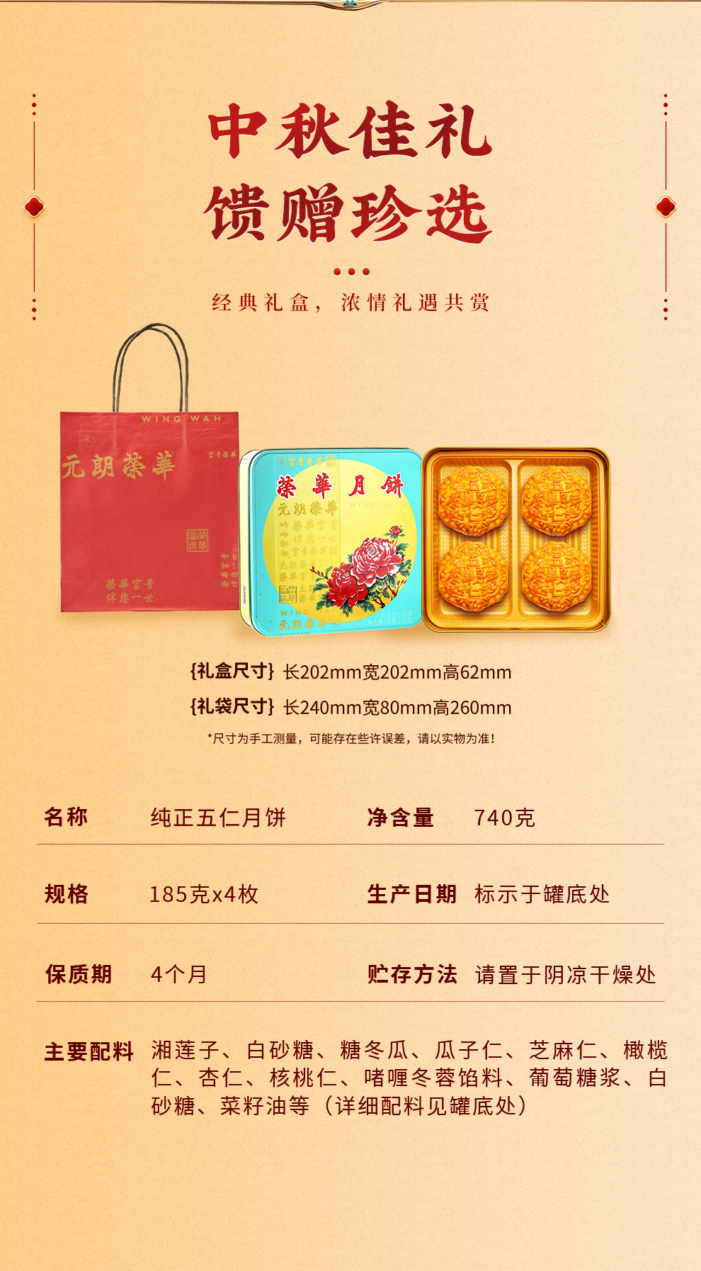 【元朗荣华】纯正伍仁 中秋月饼礼盒185g*4枚铁盒装