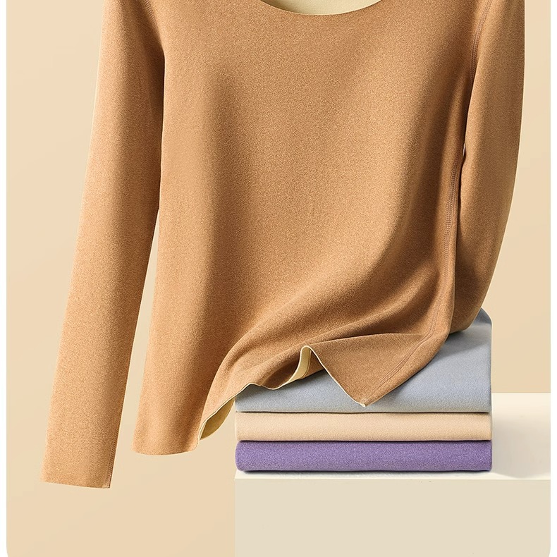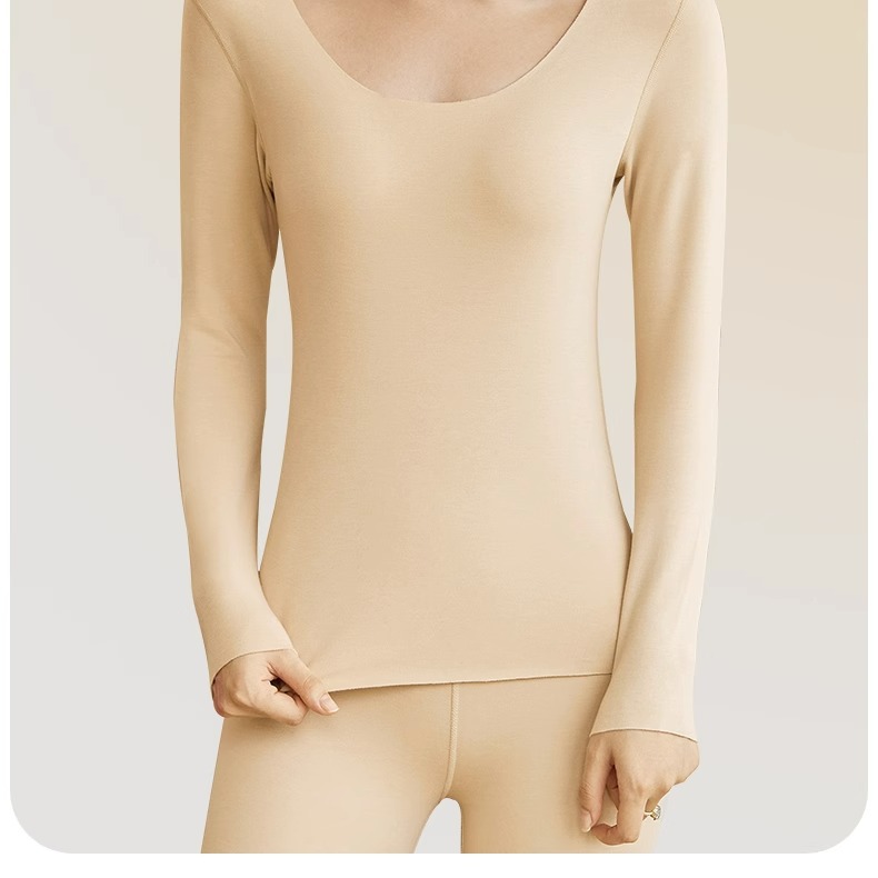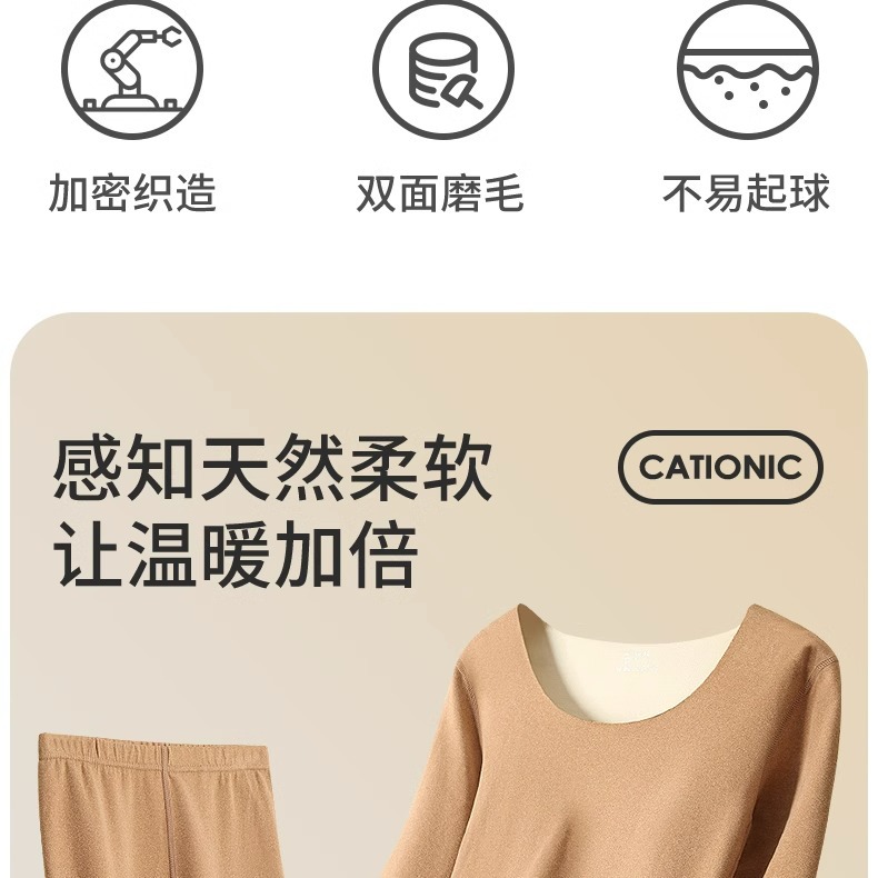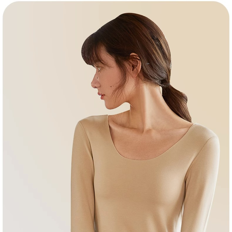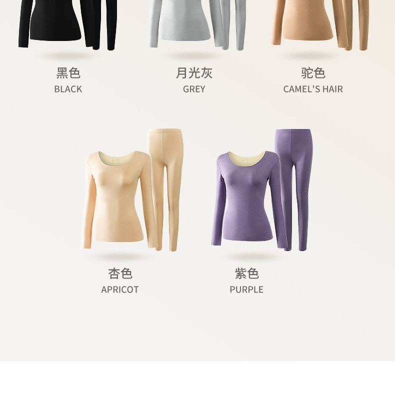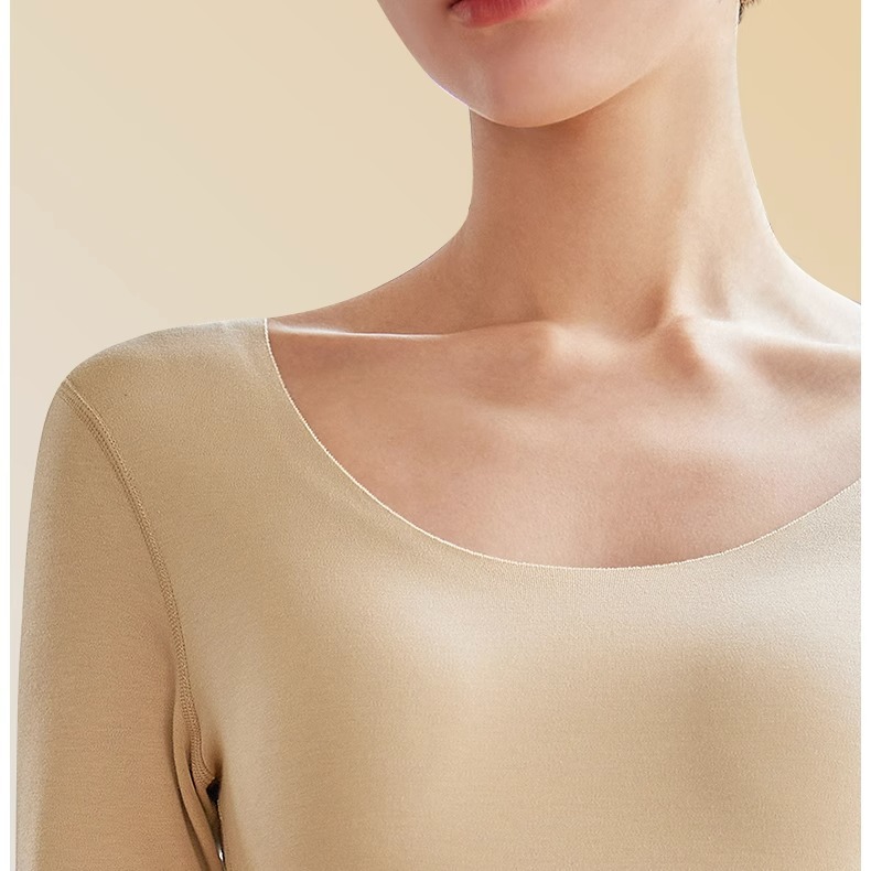 【四季如暖,秋冬无忧】温暖美丽,尽显女性魅力。内外兼修,穿上纯色光泽内衣,感受舒适无痕。秋冬季保暖内衣女士;AB面圆领无痕秋衣秋裤套装,打底保暖套装必备前行!