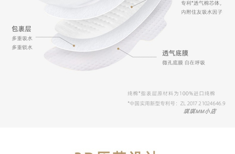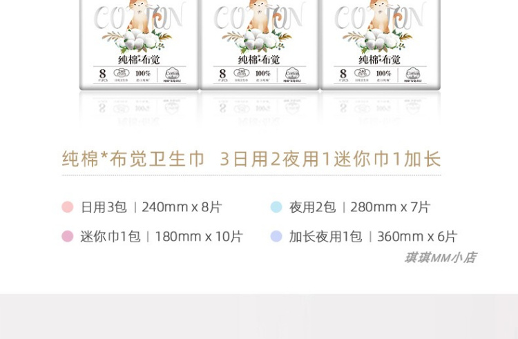 【凸凸棉】纯棉布觉卫生巾女超薄透气姨妈巾6片360mmAB3606-1