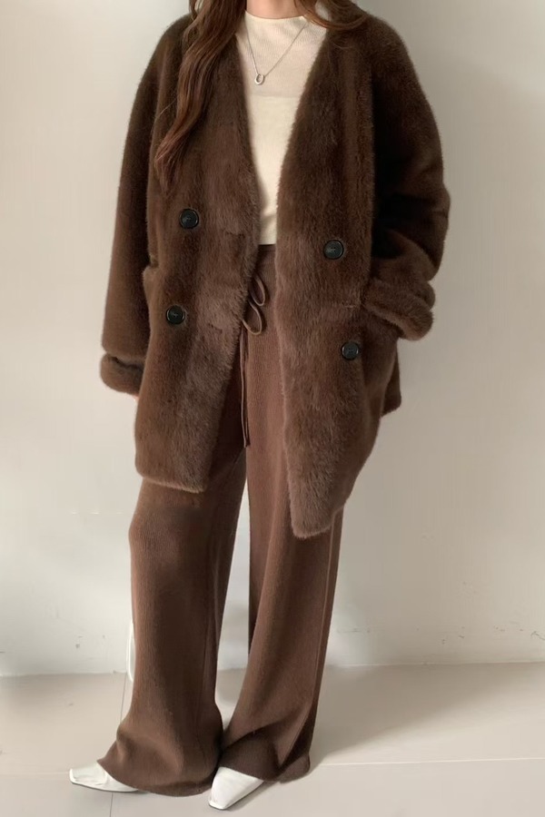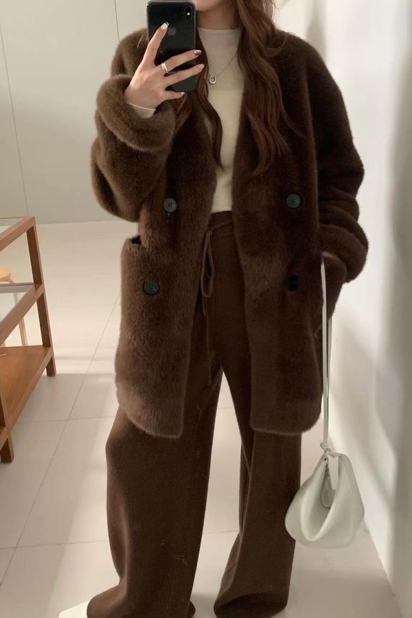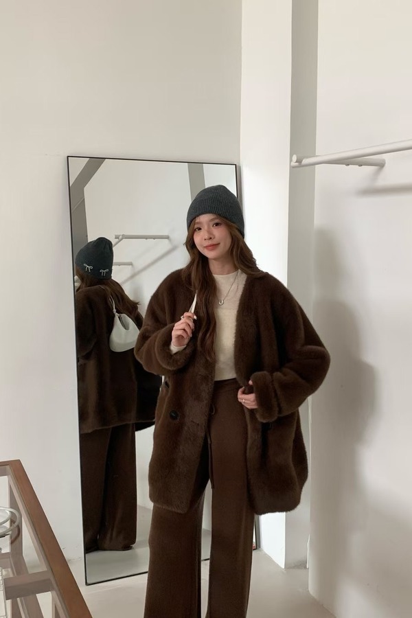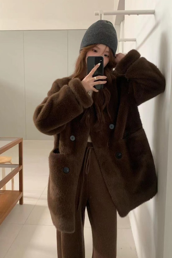 ELLA JADE 经典咖色时髦洋气毛绒皮草外套 21978
