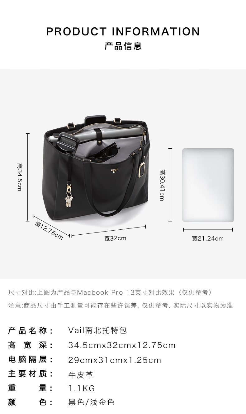TUMI 托特包女 0196674DLGL-F 黑色/浅金色.【刻字后发出的商品,不支持退换货服务】