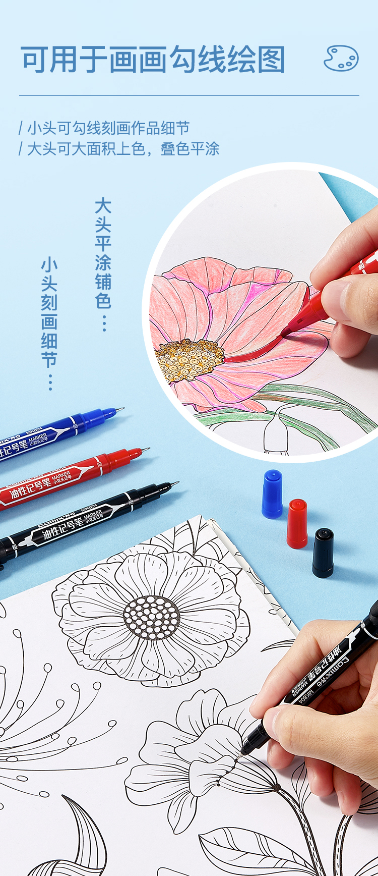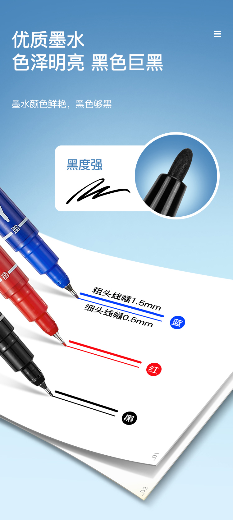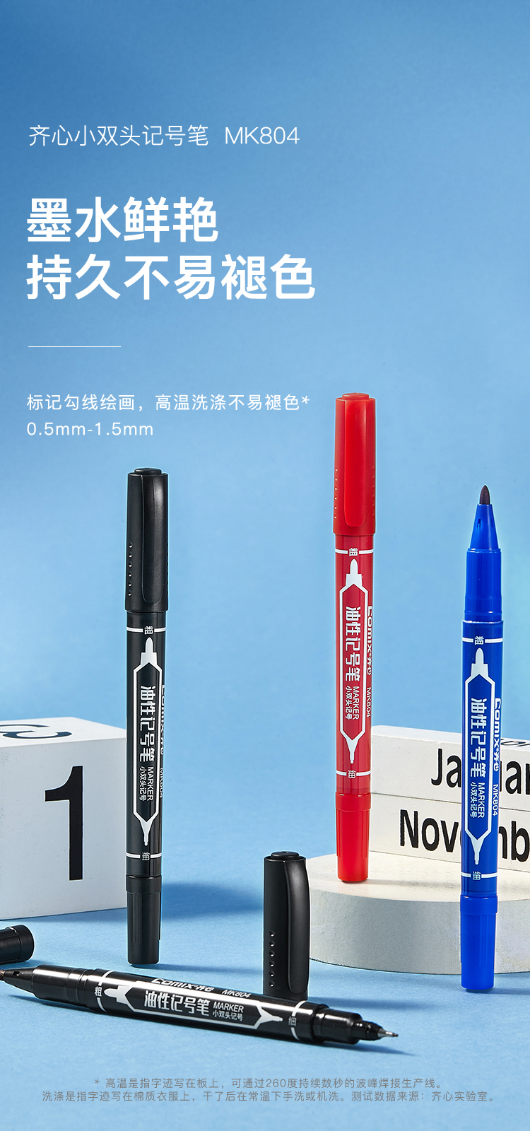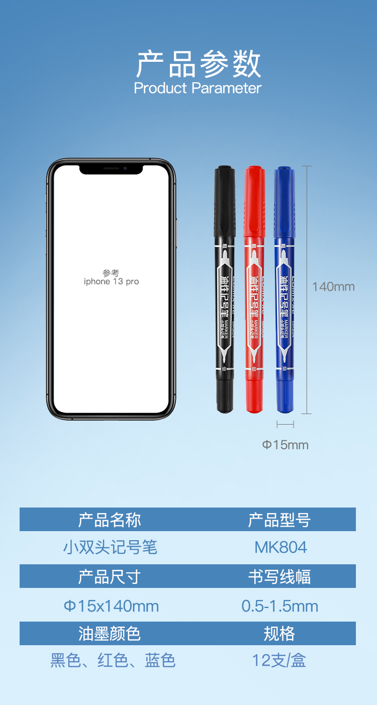齐心 MK804 小双头勾线记号笔 0.5-1.5mm