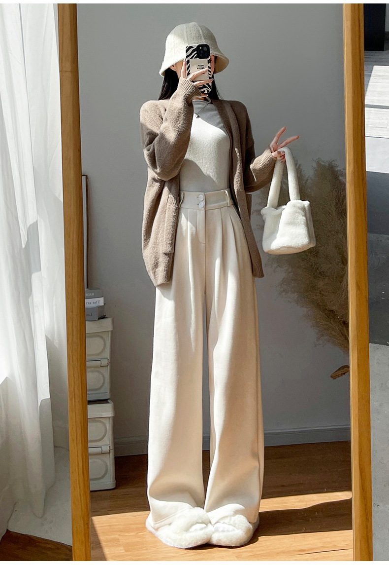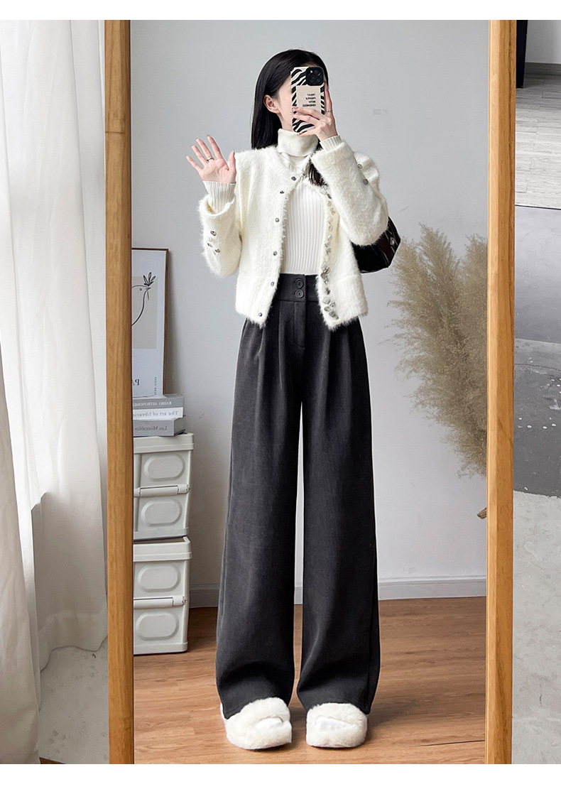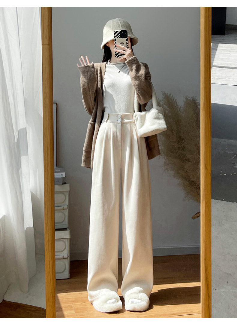 升级款欧棉绒阔腿裤雪尼尔休闲阔腿裤女秋冬季加绒加厚2025新款直筒西装小个子灯芯绒裤子个子加长休闲裤