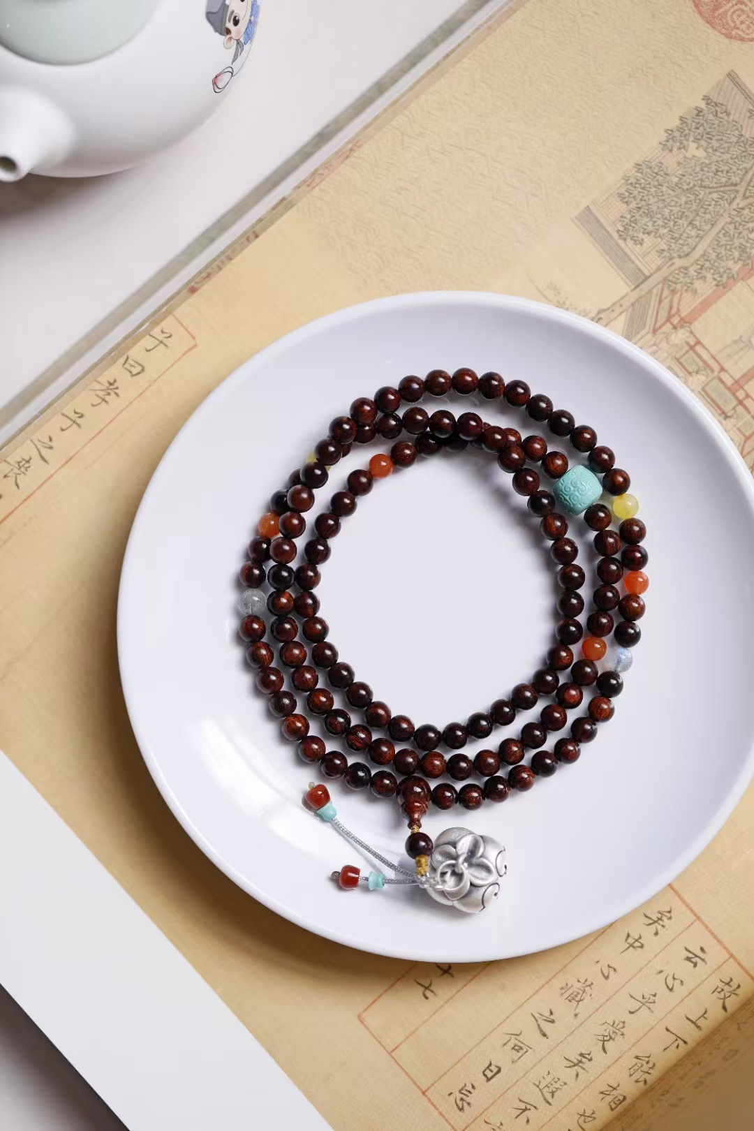 配饰:纯银、松石、蜜蜡、南红、月光石