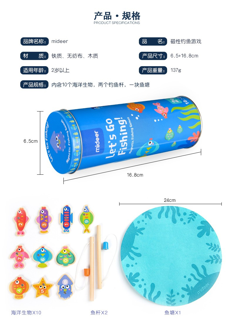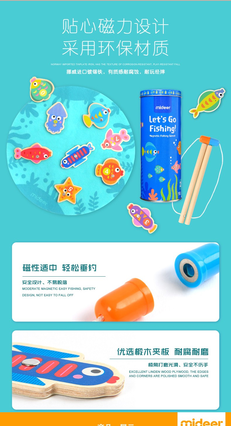弥鹿儿童木质磁性钓鱼玩具 MD1085
