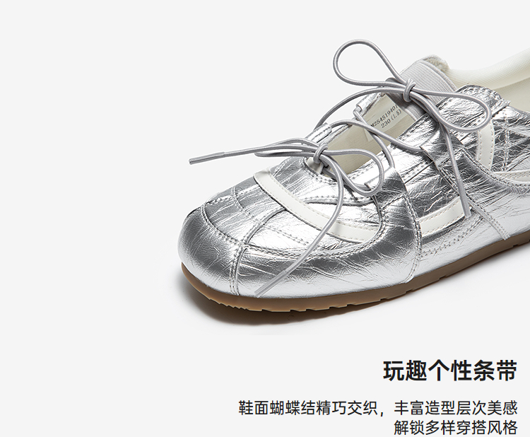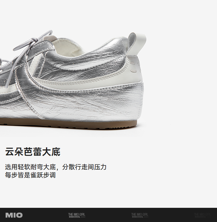 MIO米奥玛丽珍鞋银色朋克芭蕾舞鞋圆头运动休闲女鞋M254519401