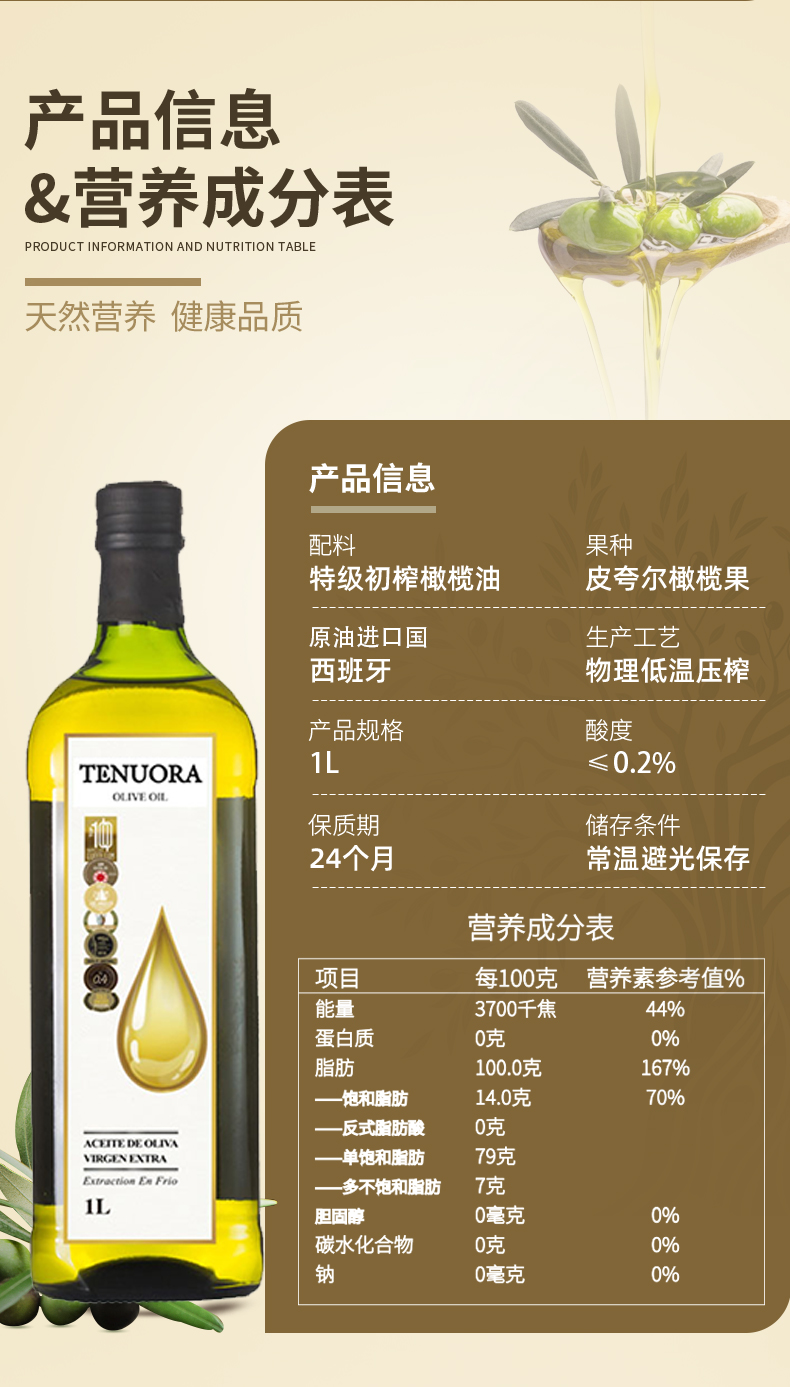 特诺娜特级初榨橄榄油(白金标)1L