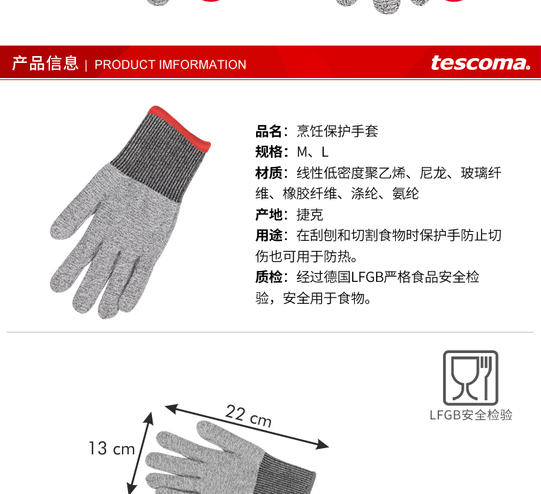 捷克/tescoma PRESTO系列 进口家用厨房防切割手套