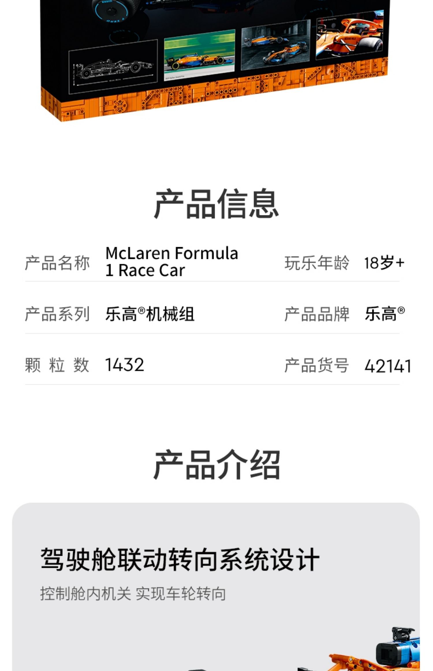 乐高积木42141科技机械组 迈凯伦F1 赛车