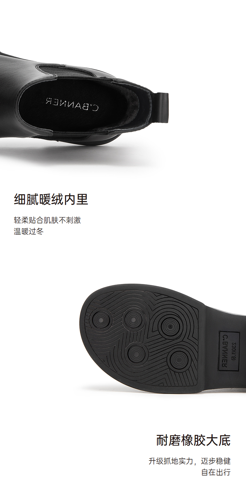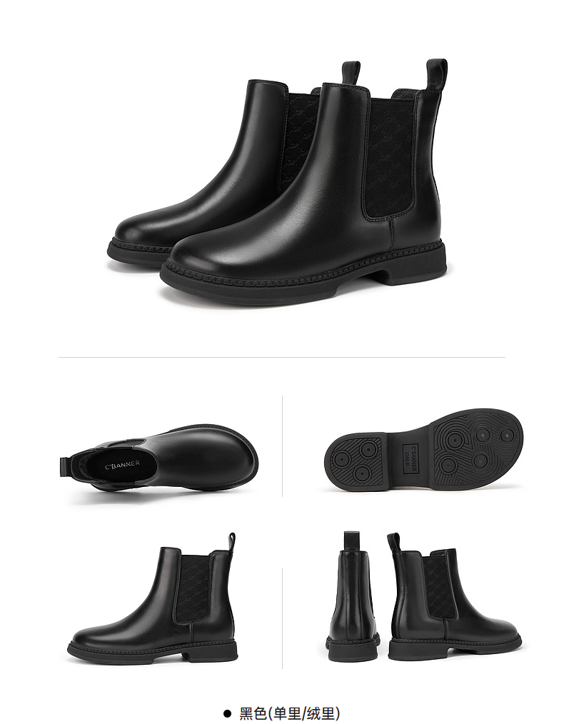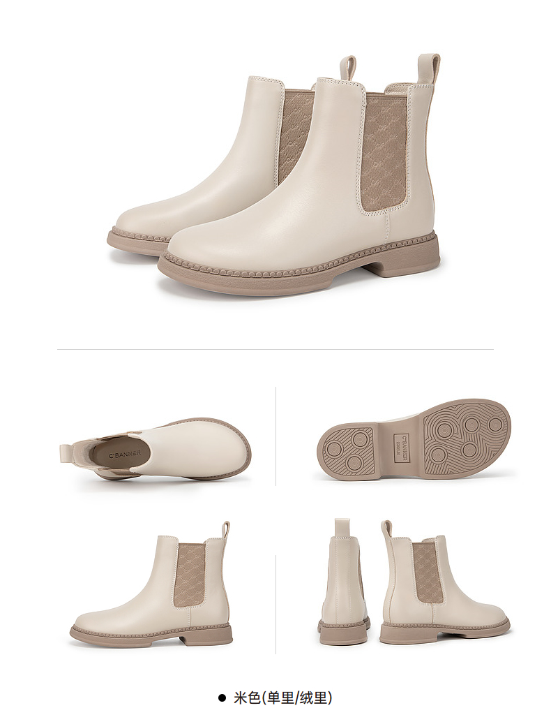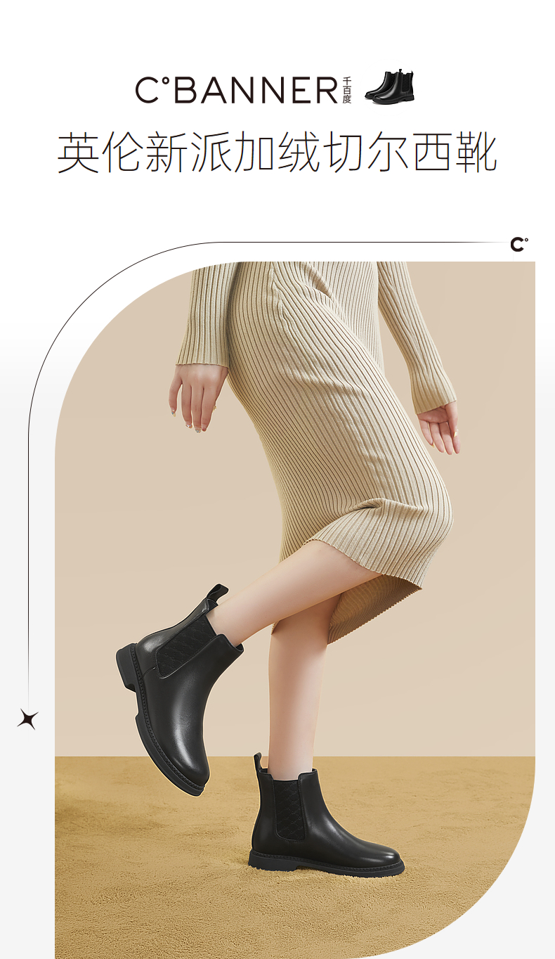 【加绒】千百度真皮切尔西靴秋冬高级感小短靴女鞋烟筒靴加绒粗跟A23665205