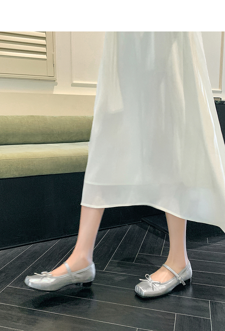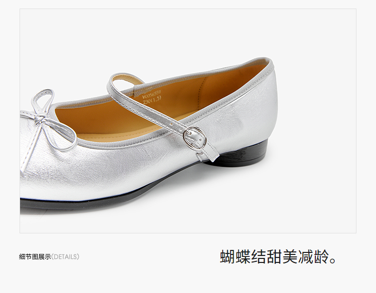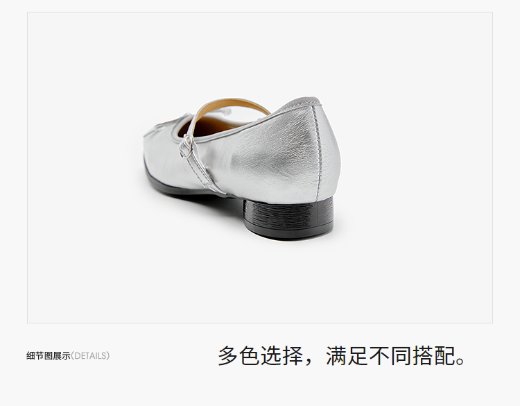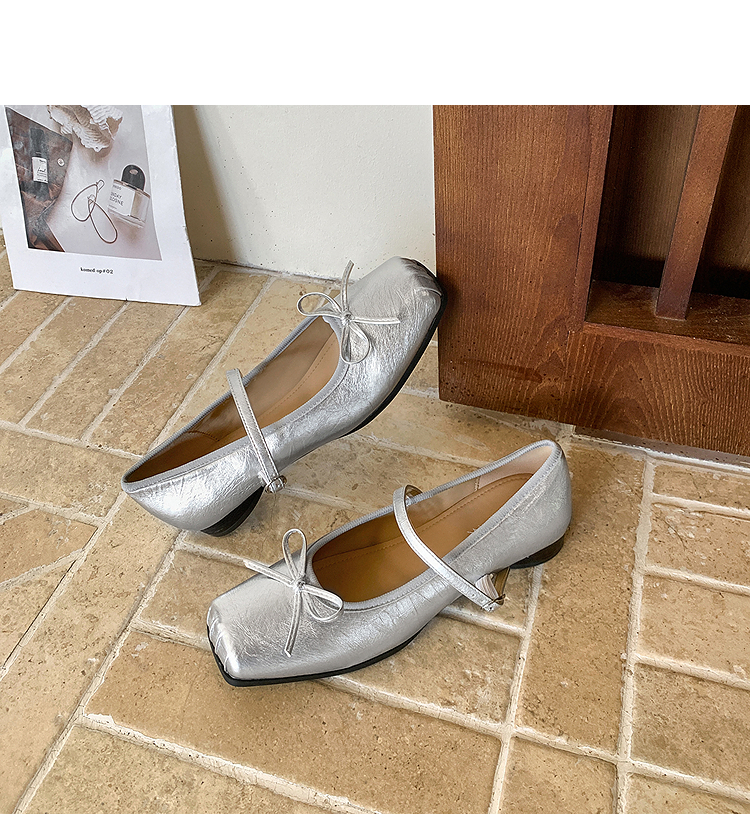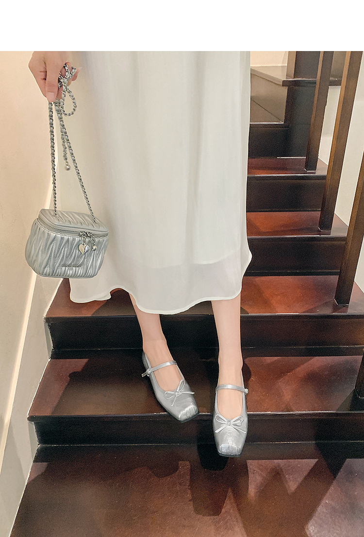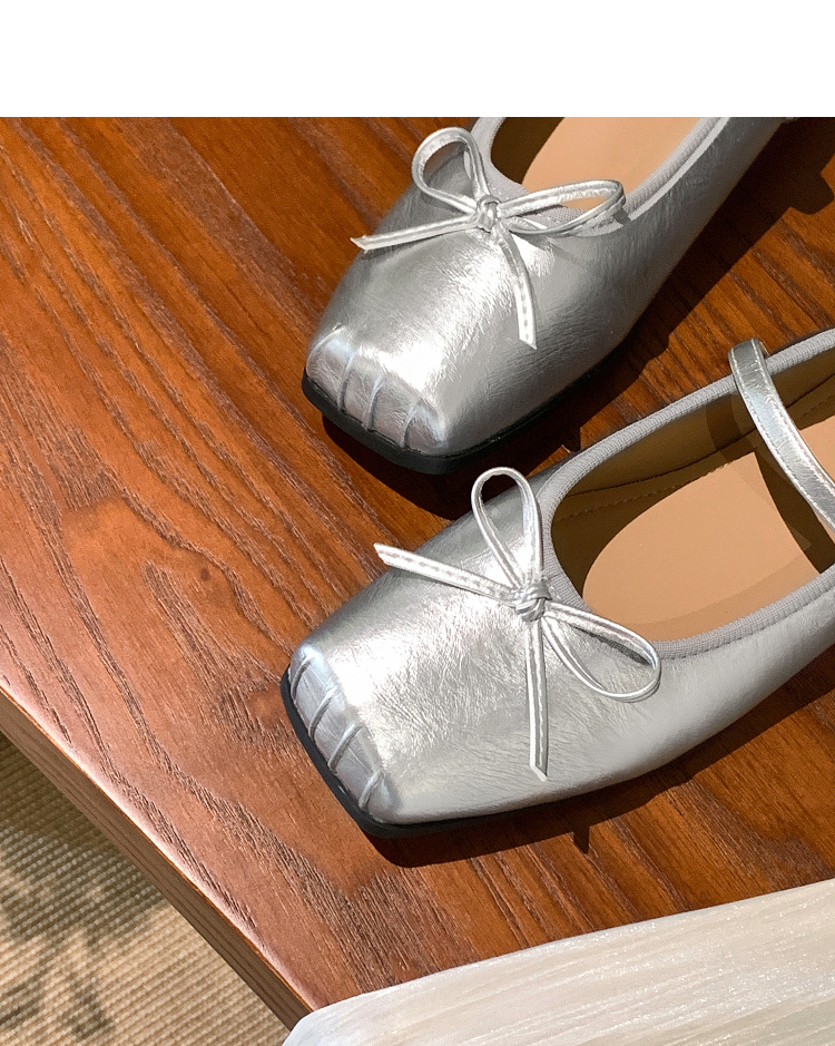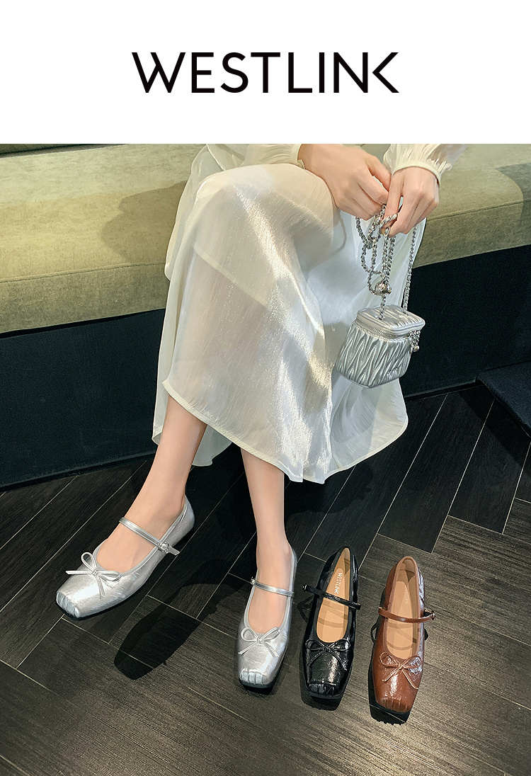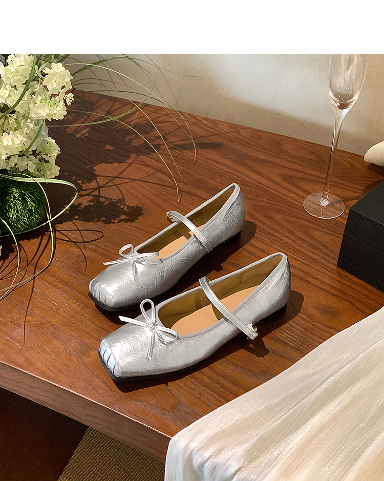 西遇方头芭蕾舞鞋女新款春夏复古法式平底鞋低跟软底银色单鞋V0056559