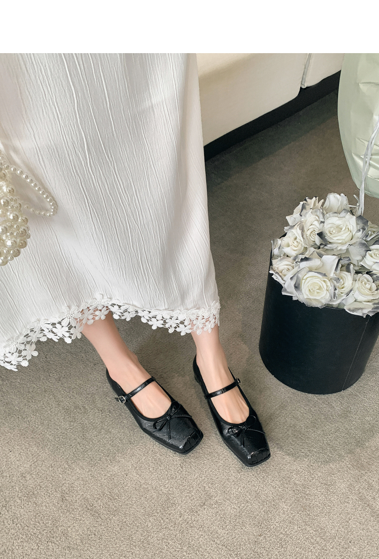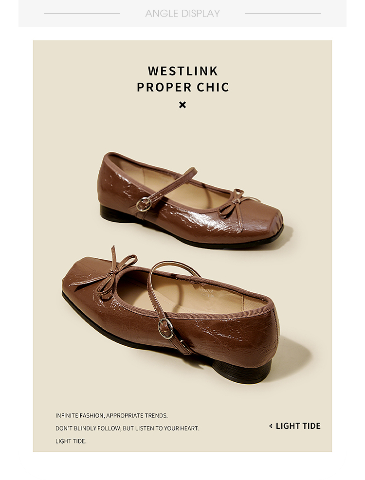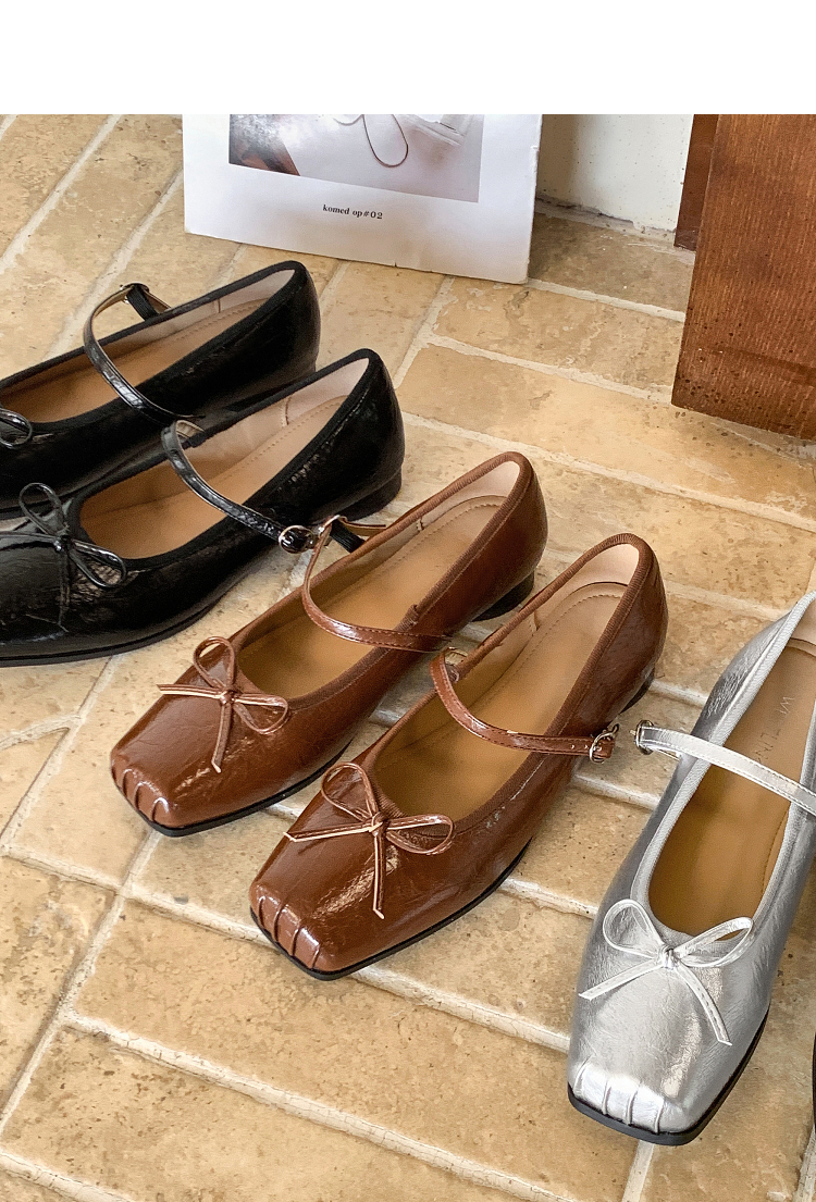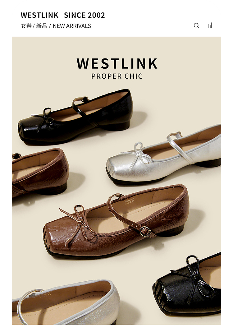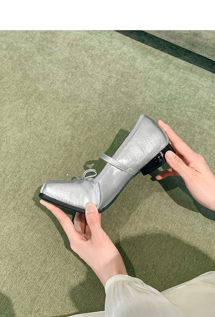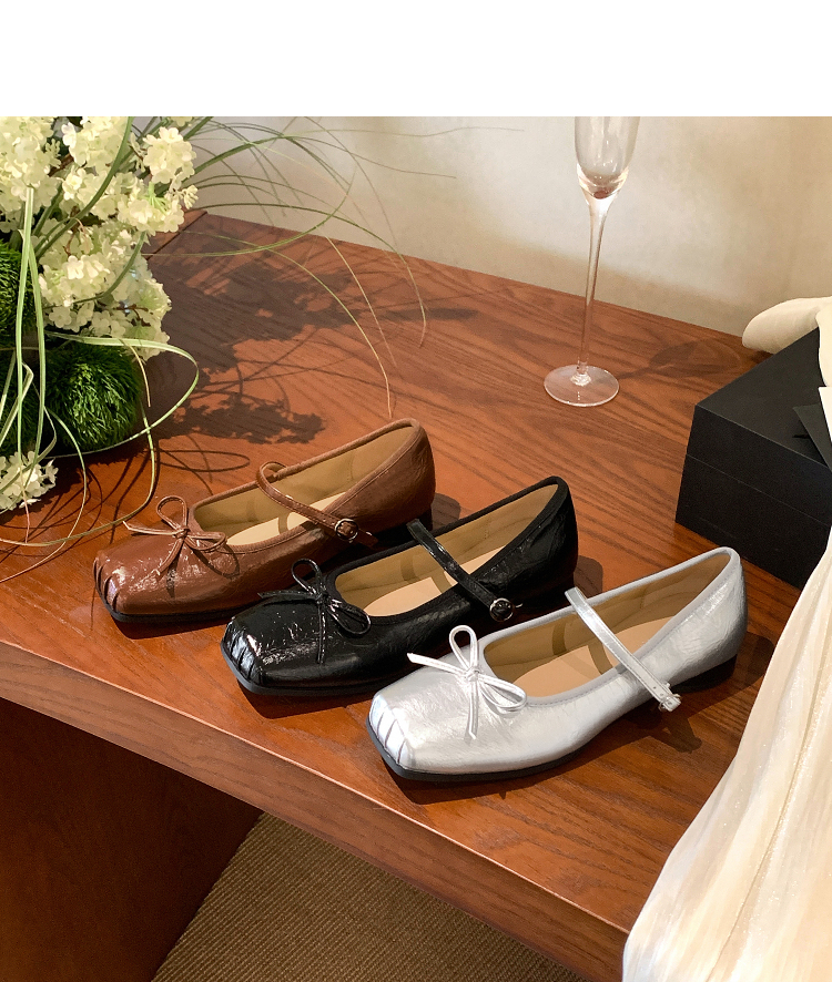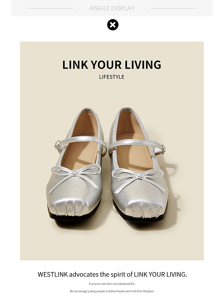 西遇方头芭蕾舞鞋女新款春夏复古法式平底鞋低跟软底银色单鞋V0056559