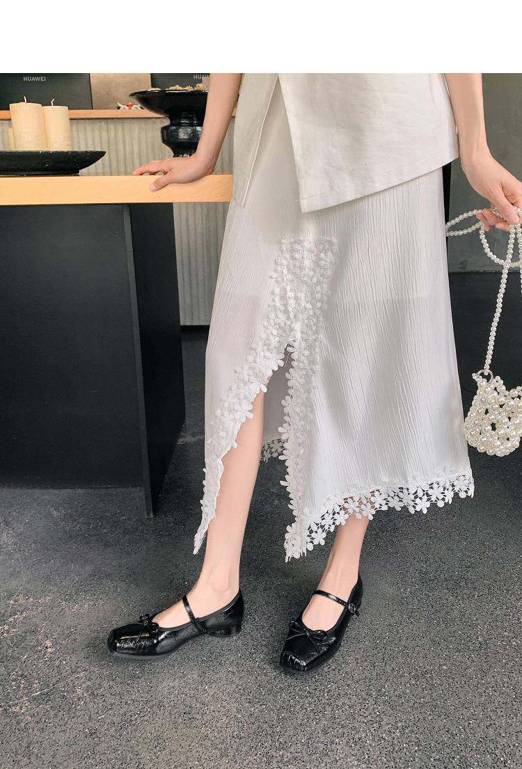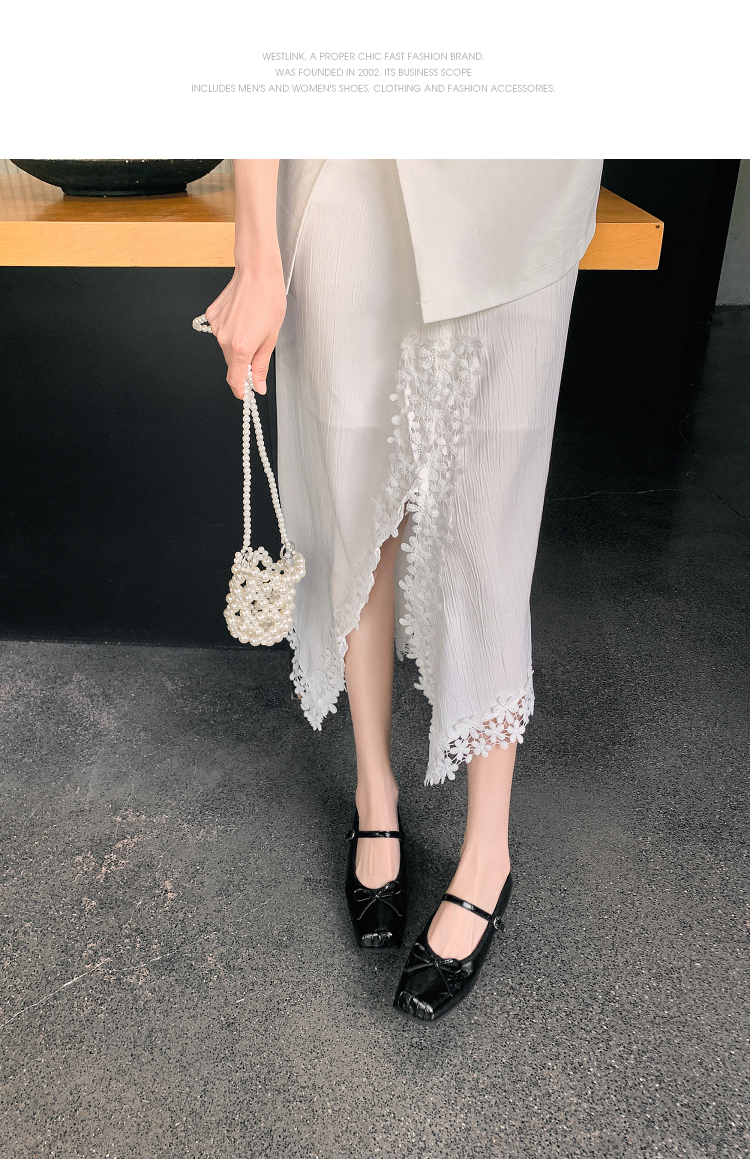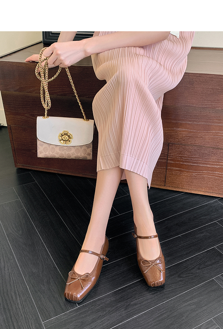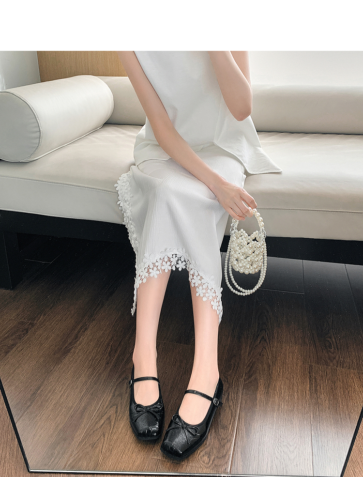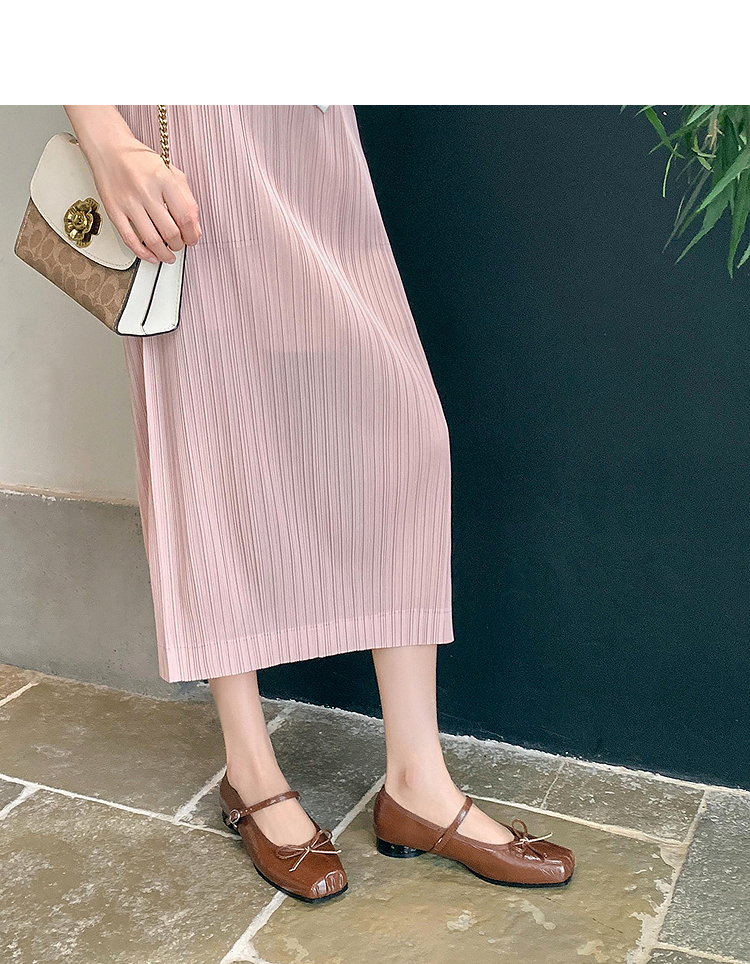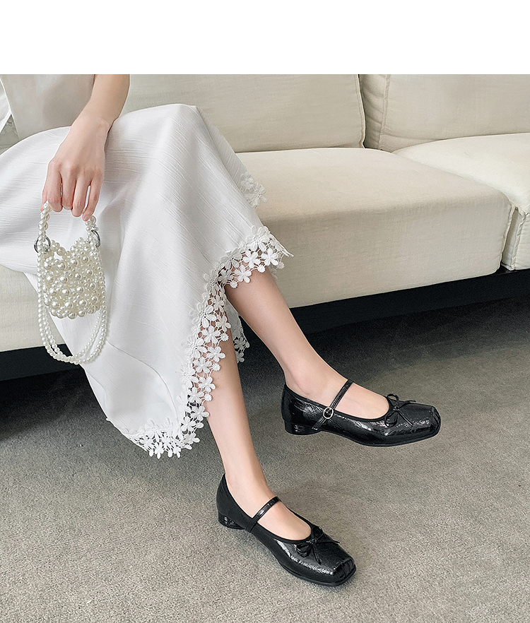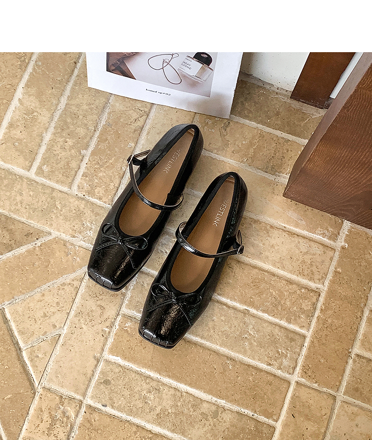 西遇方头芭蕾舞鞋女新款春夏复古法式平底鞋低跟软底银色单鞋V0056559