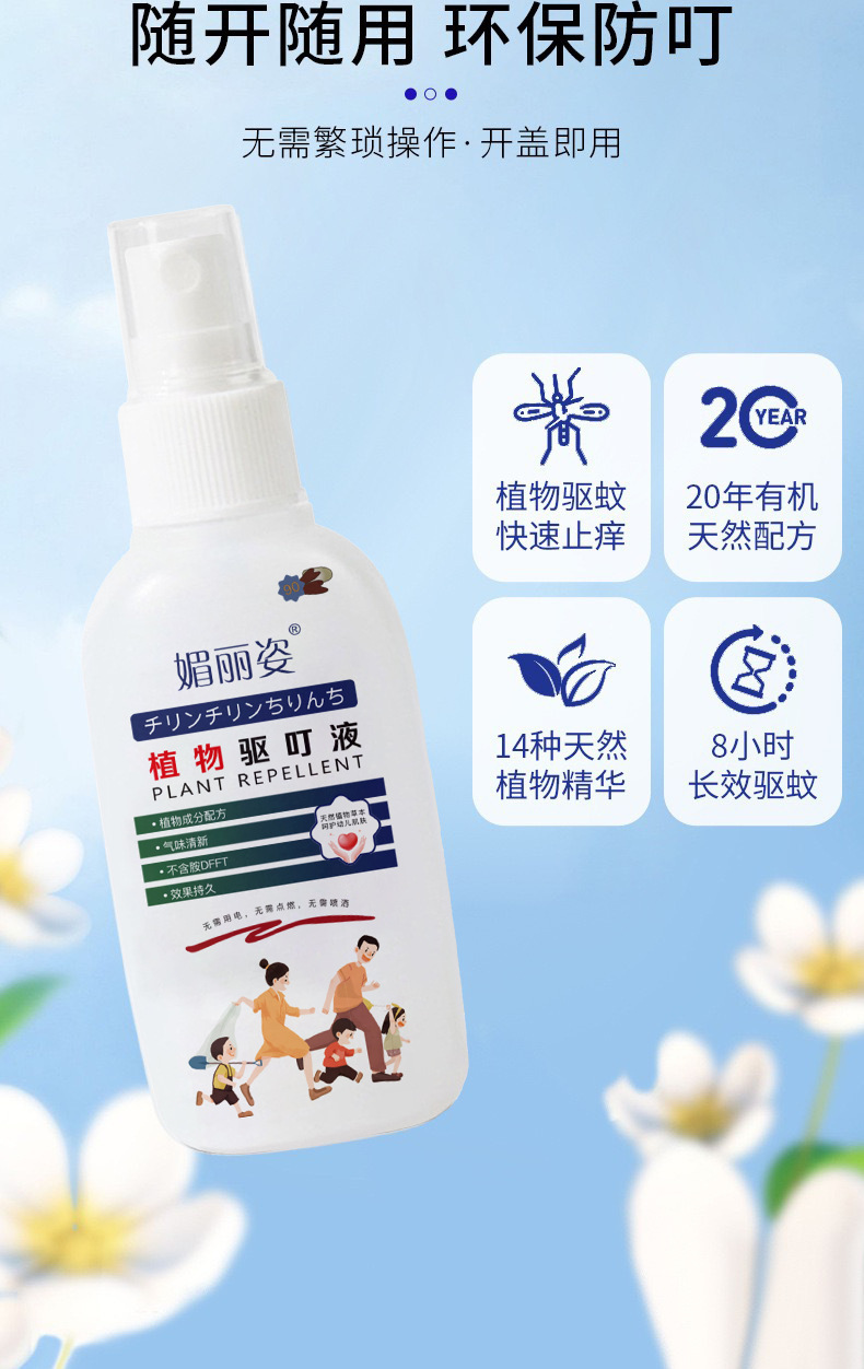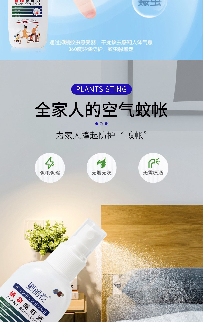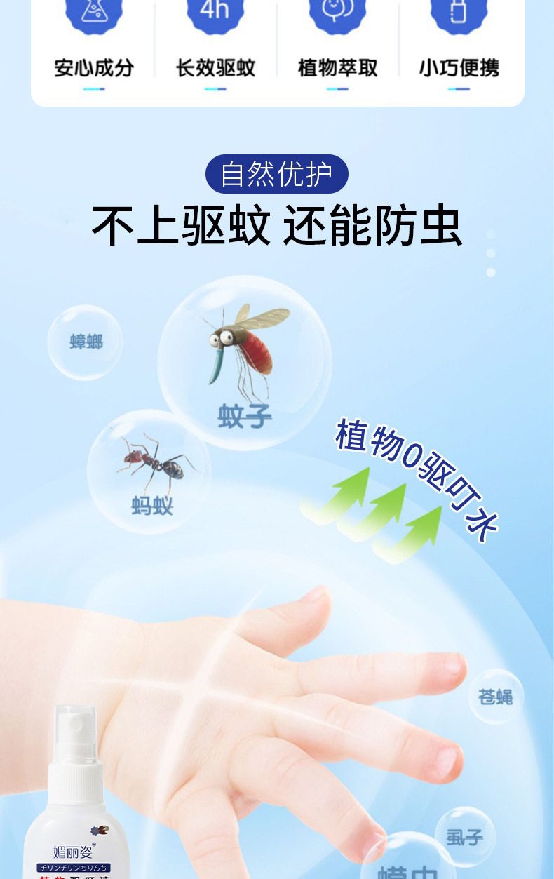 【速抢!4支装巨划算】快速止痒驱叮液 媚丽姿瓶装植物配方 蚊虫叮咬清凉防蚊 小巧便携喷雾