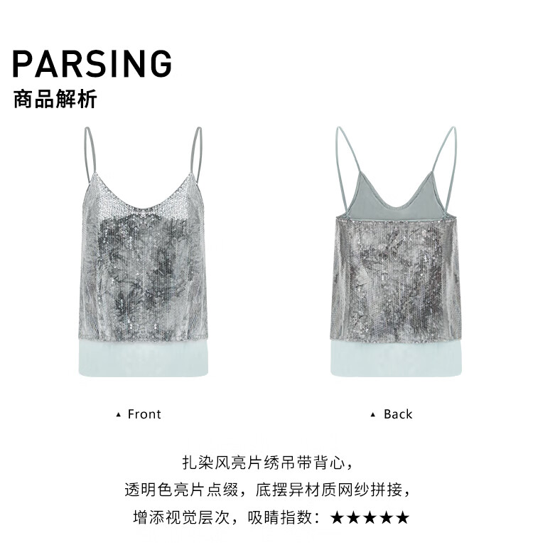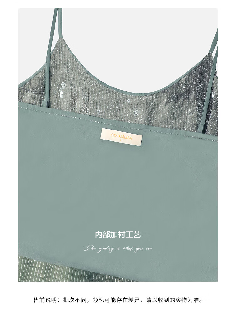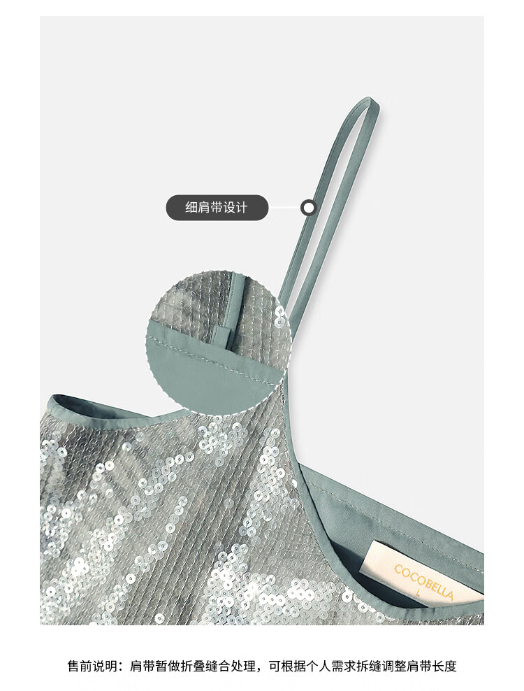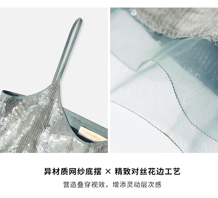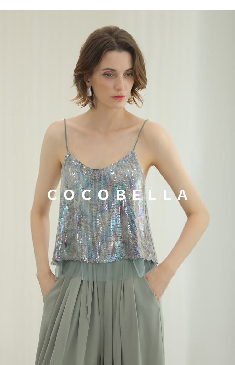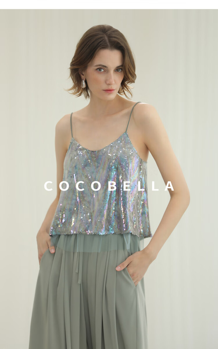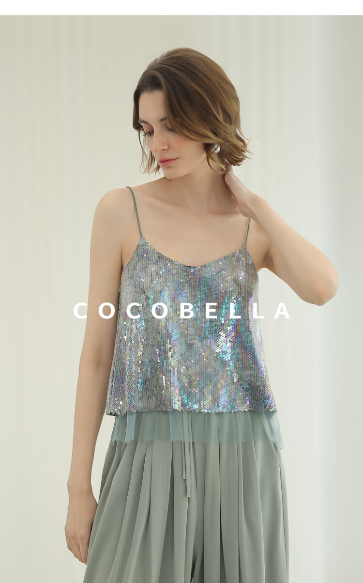 COCOBELLA扎染风亮片绣吊带背心女网纱拼接微性感V领上衣VT33