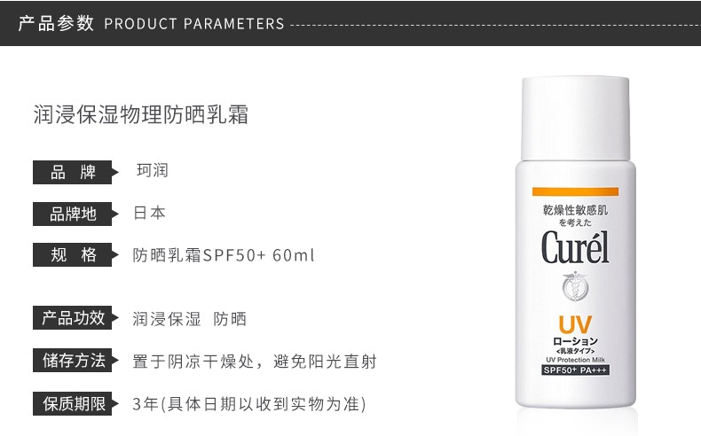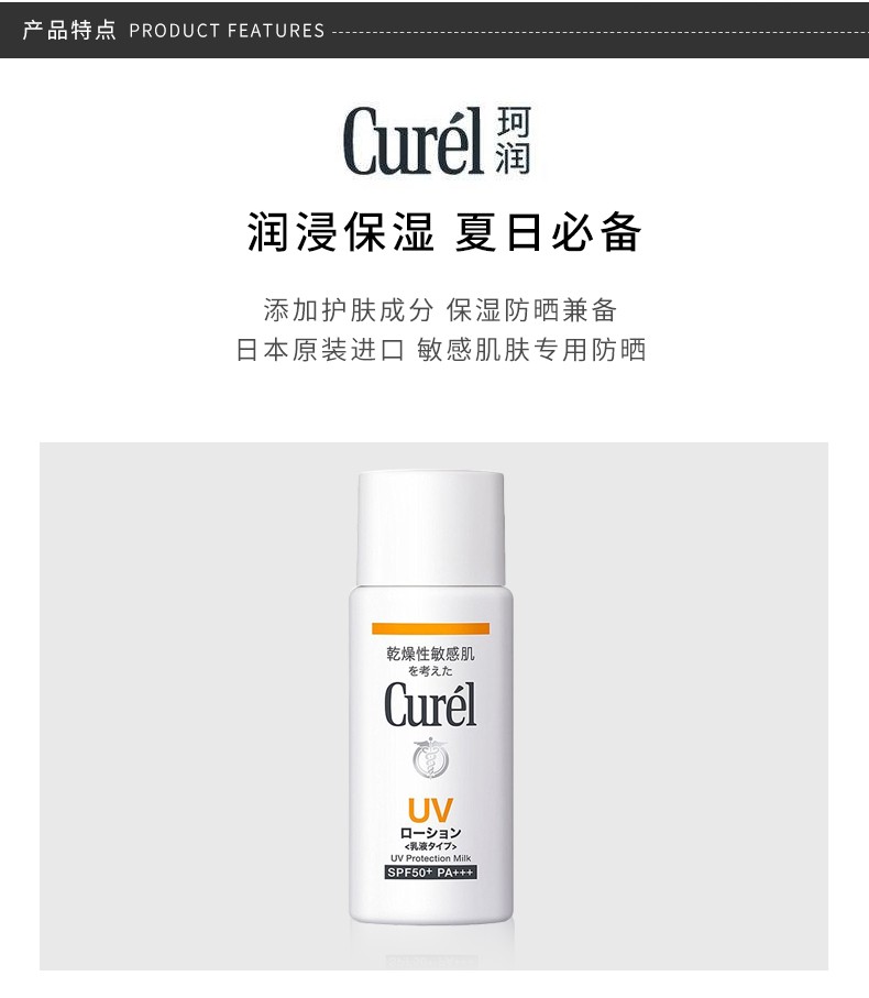 这款防晒乳无香料无着色不含酒精,配合了浸润保湿的神经酰胺功能成分及桉树,罗汉柏等植物精华,
