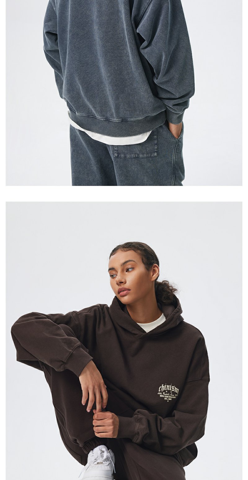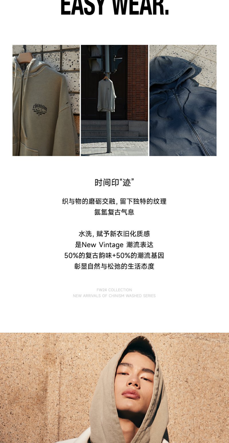 【水洗系列】CHINISM赤尘 重磅475G连帽卫衣男美式复古做旧上衣